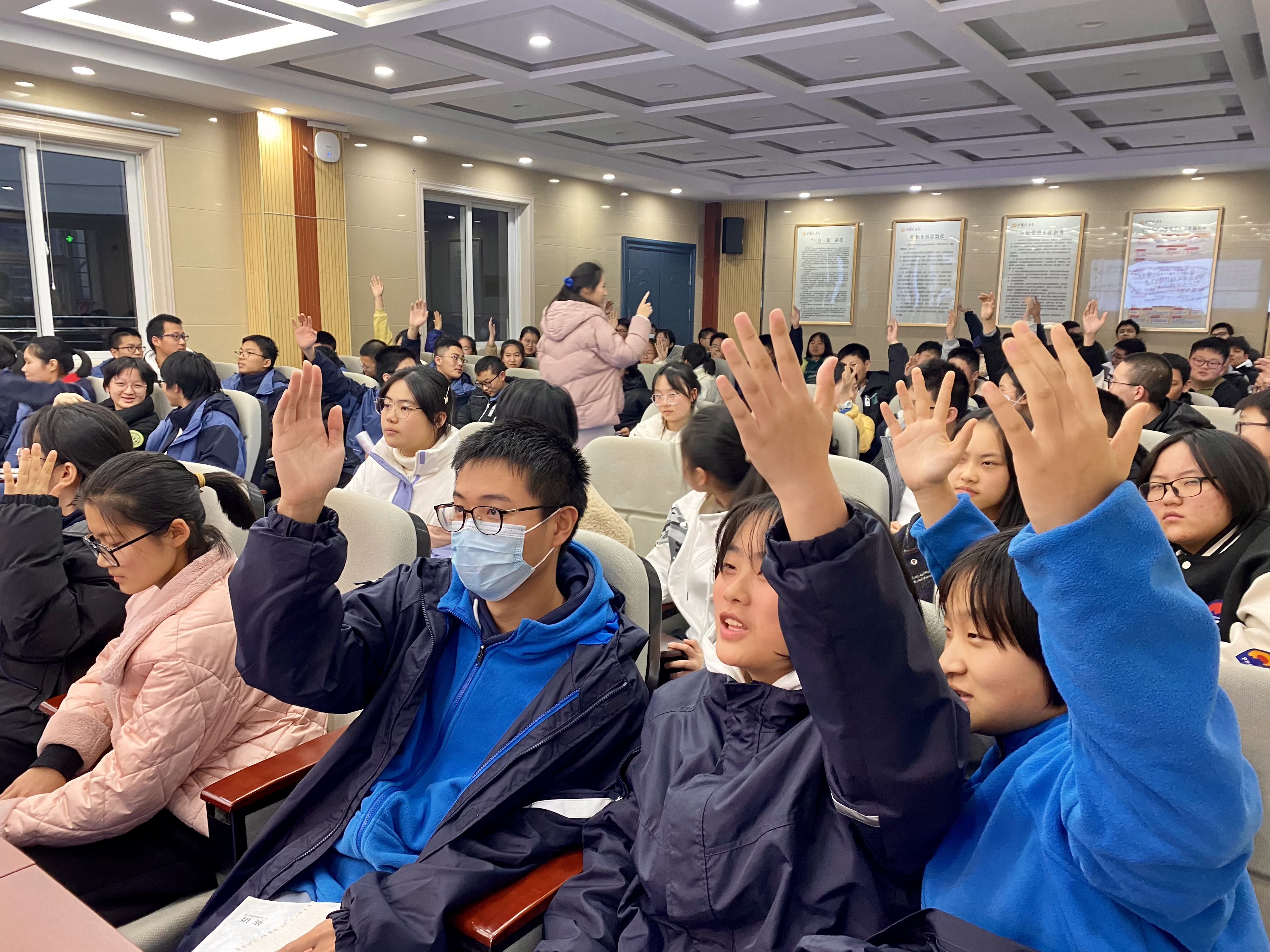 在培训大会上,樊荣老师对新加入辩论社的同学表示热烈欢迎,阐述举办中学辩论赛活动的意义,明确辩论赛需要参与者积极思考,和队友紧密配合,与对手思维摩擦。社长周璐重点介绍辩论赛事的主要流程和四位辩手的分工定位。现场同学认真听讲,仔细记录。为了让同学们直观感受精彩激烈的辩论氛围,还特别播放了一场辩论赛视频,引得同学们兴奋不已,跃跃欲试。徐云老师强调了辩论的技巧。一辩语言稳而有力;二、三辩现场应变能力要强;四辩要求有思想、有高度、有热情。经过全体社员的举手表决:“发掘人才需要考试/发掘人才不需要考试”在六个论题中脱颖而出,定为本学期辩论赛论题。参赛的正反双方八名成员将通过笔试和面试选拔产生,社员们情绪高涨,积极组队,备战比赛。