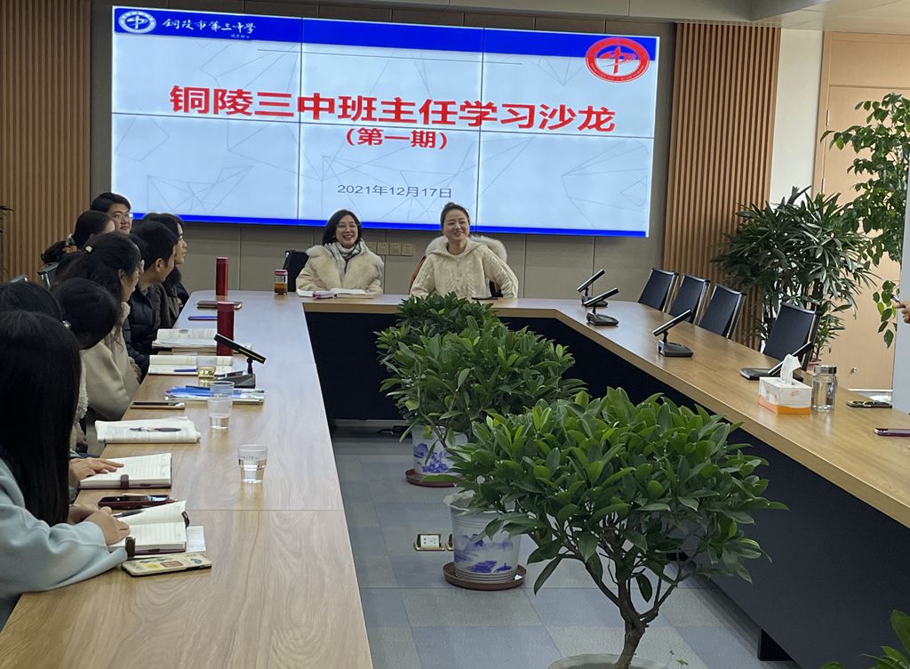 班级管理工作是学校教育教学工作的重点,班主任作为班级的领导者和学生成长的导师,是学校发展的关键少数。12月17日,我校开展第一期班主任学习沙龙活动,活动邀请了铜陵市汪红英名班主任主持人汪红英老师及其成员,活动还吸引数位青年非班主任教师参加。