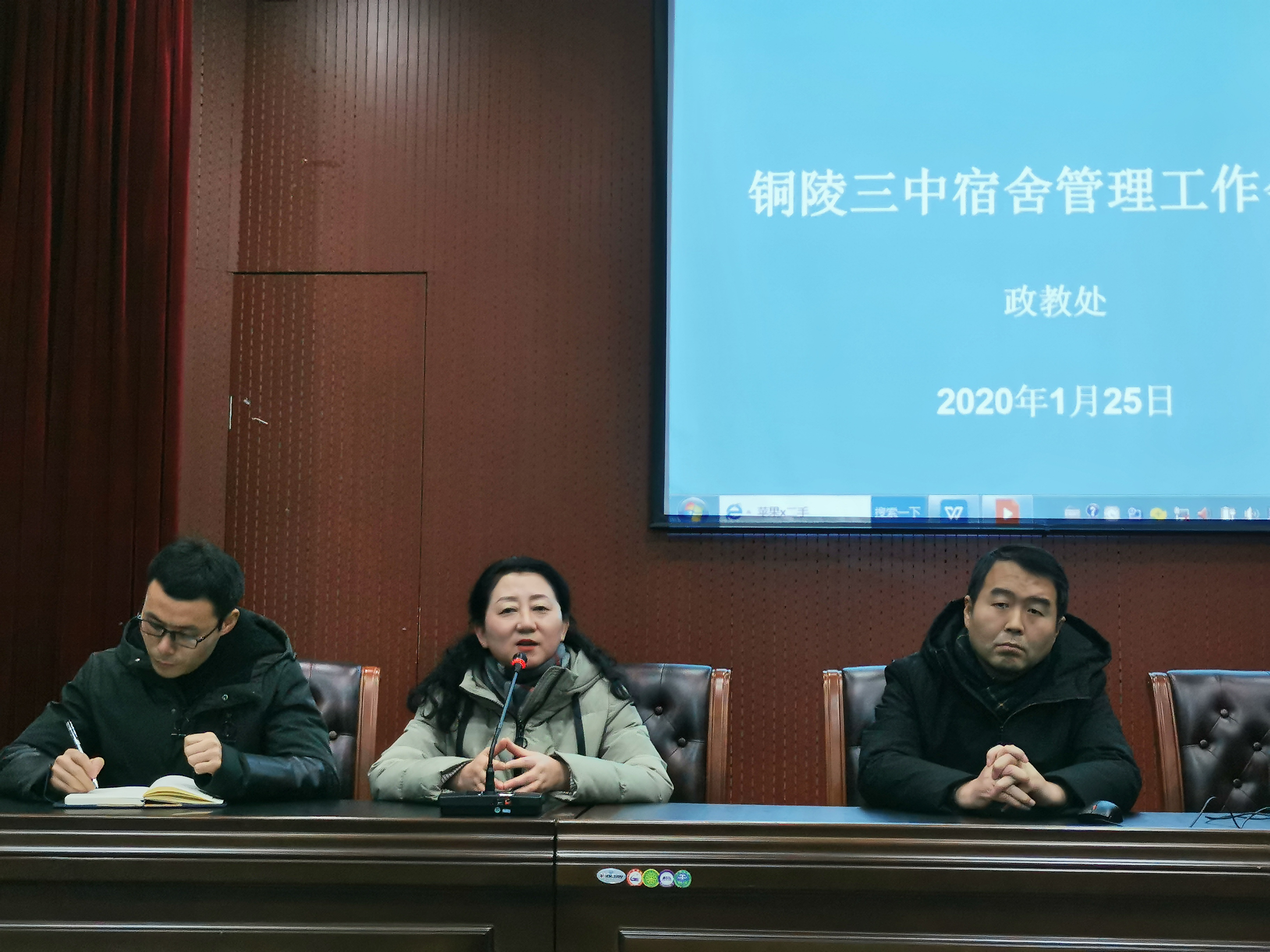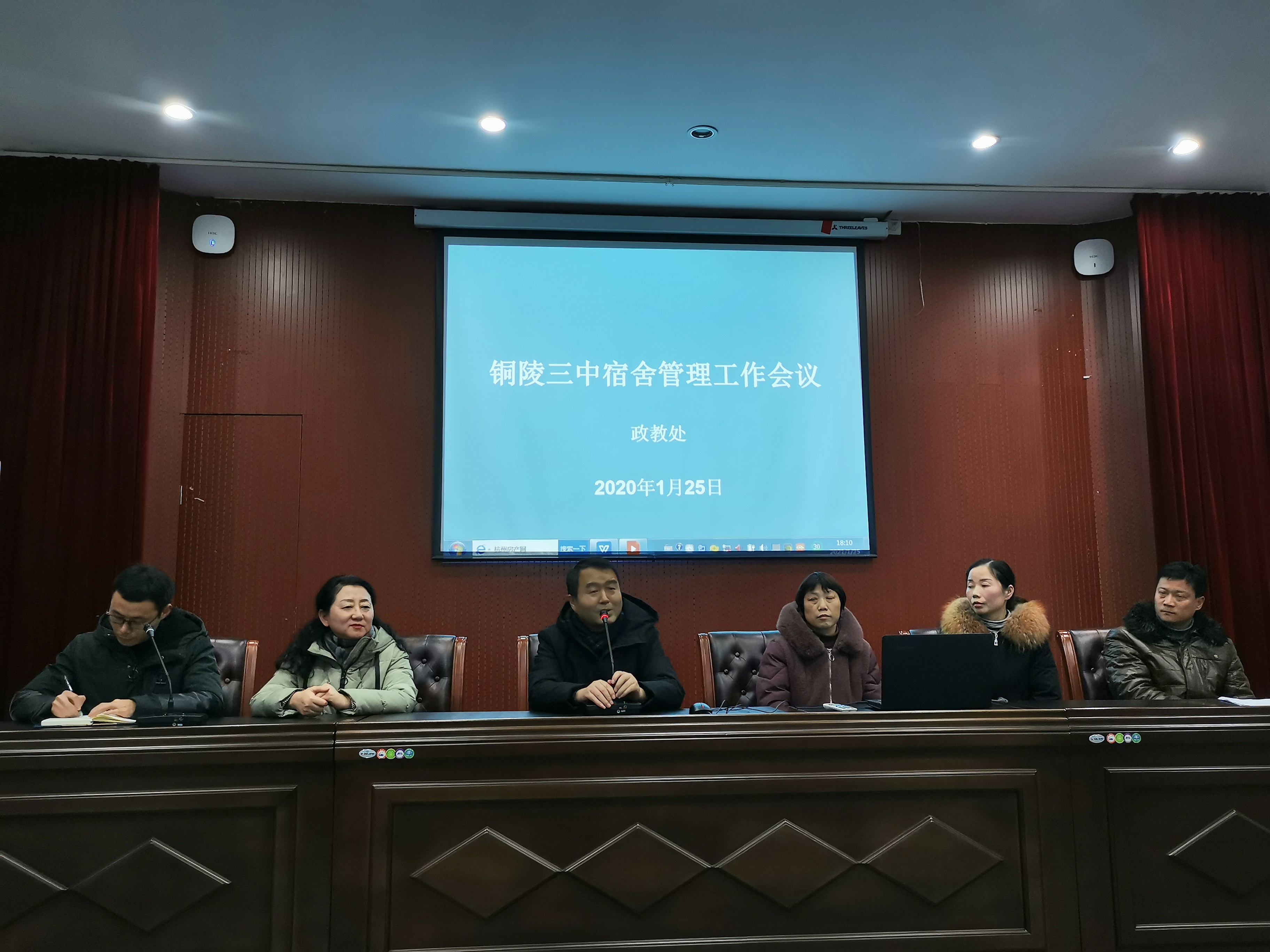 1月25日下午,宿舍管理工作会议在校多功能厅召开。校党委委员、政教处主任章学标,德育管理中心胡晓雯,政教处马红,物业公司经理及宿管老师,全体住校生等参加。会议由左飞主持。