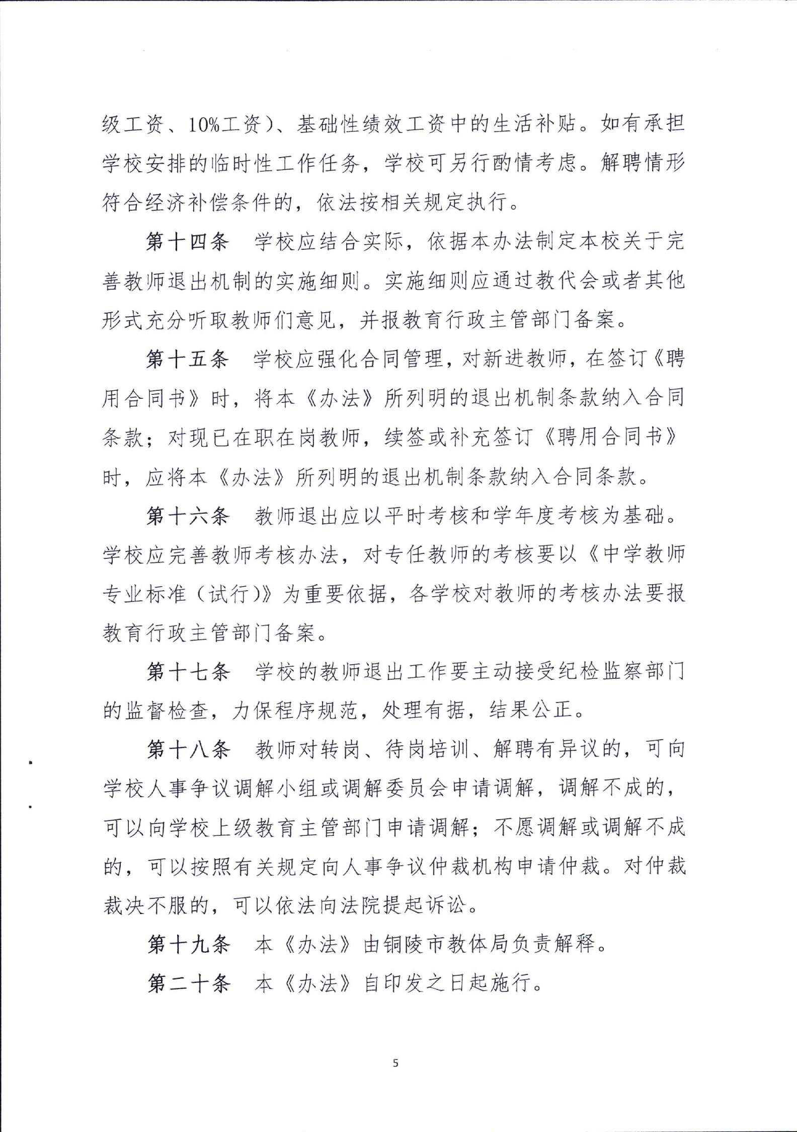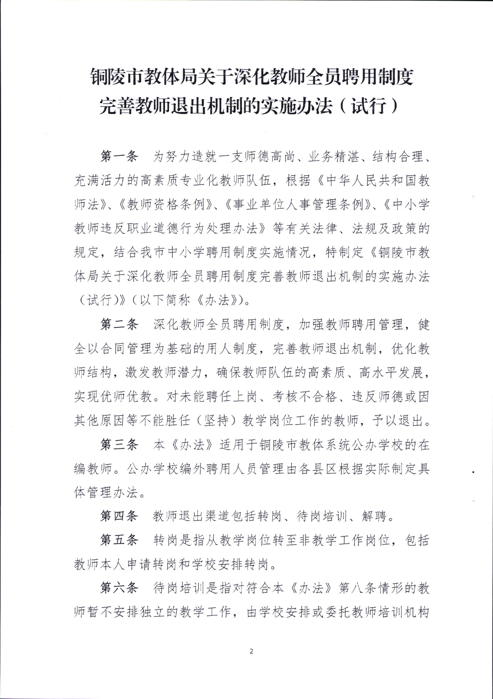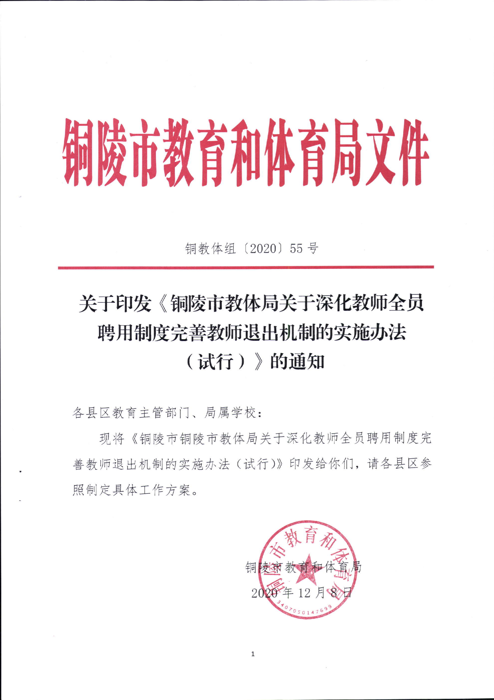 关于印发《铜陵市教体局关于深化教师全员聘用制度完善教师退出机制的实施办法(试行)》的通知