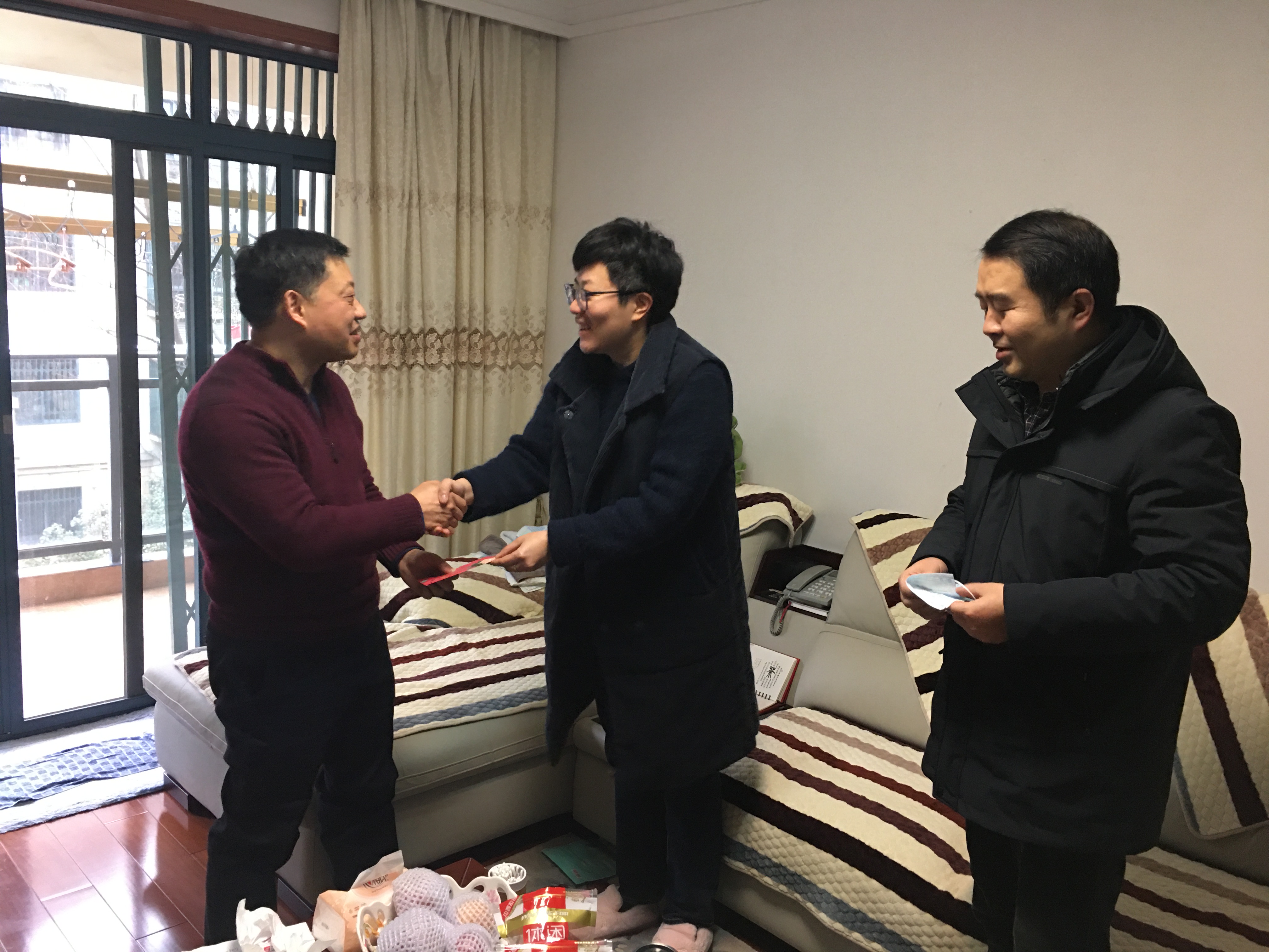 2月5日上午,校党委副书记叶叶,校党委委员、政教处主任章学标一行三人,走访慰问班主任代表黄拥军老师和陈金娟老师。