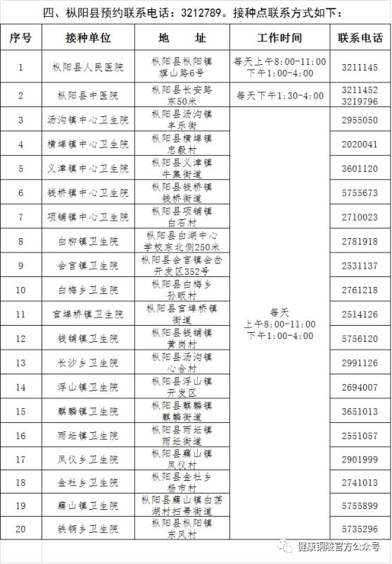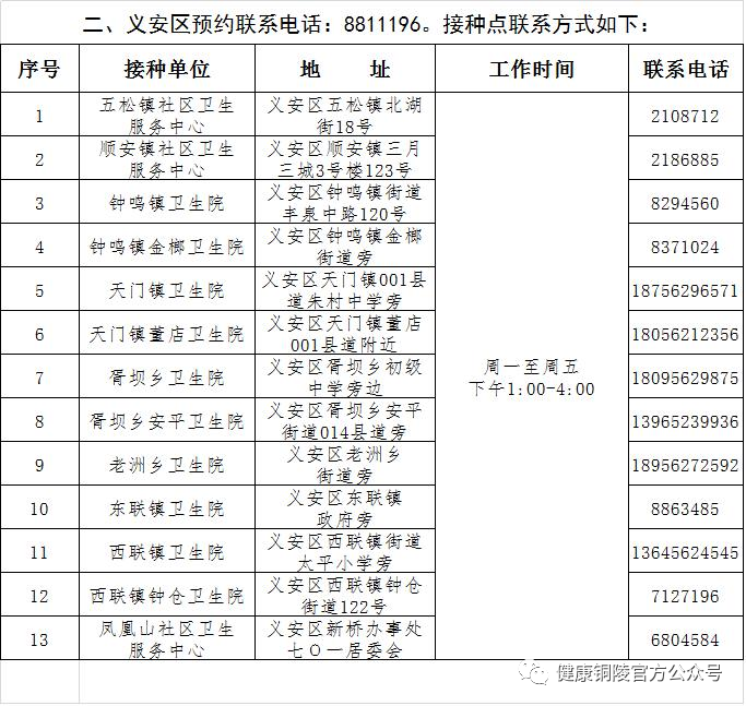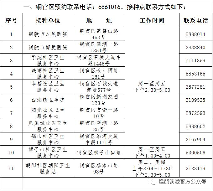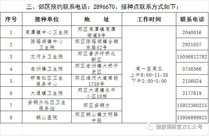 铜陵市新冠病毒疫苗预约接种联系方式