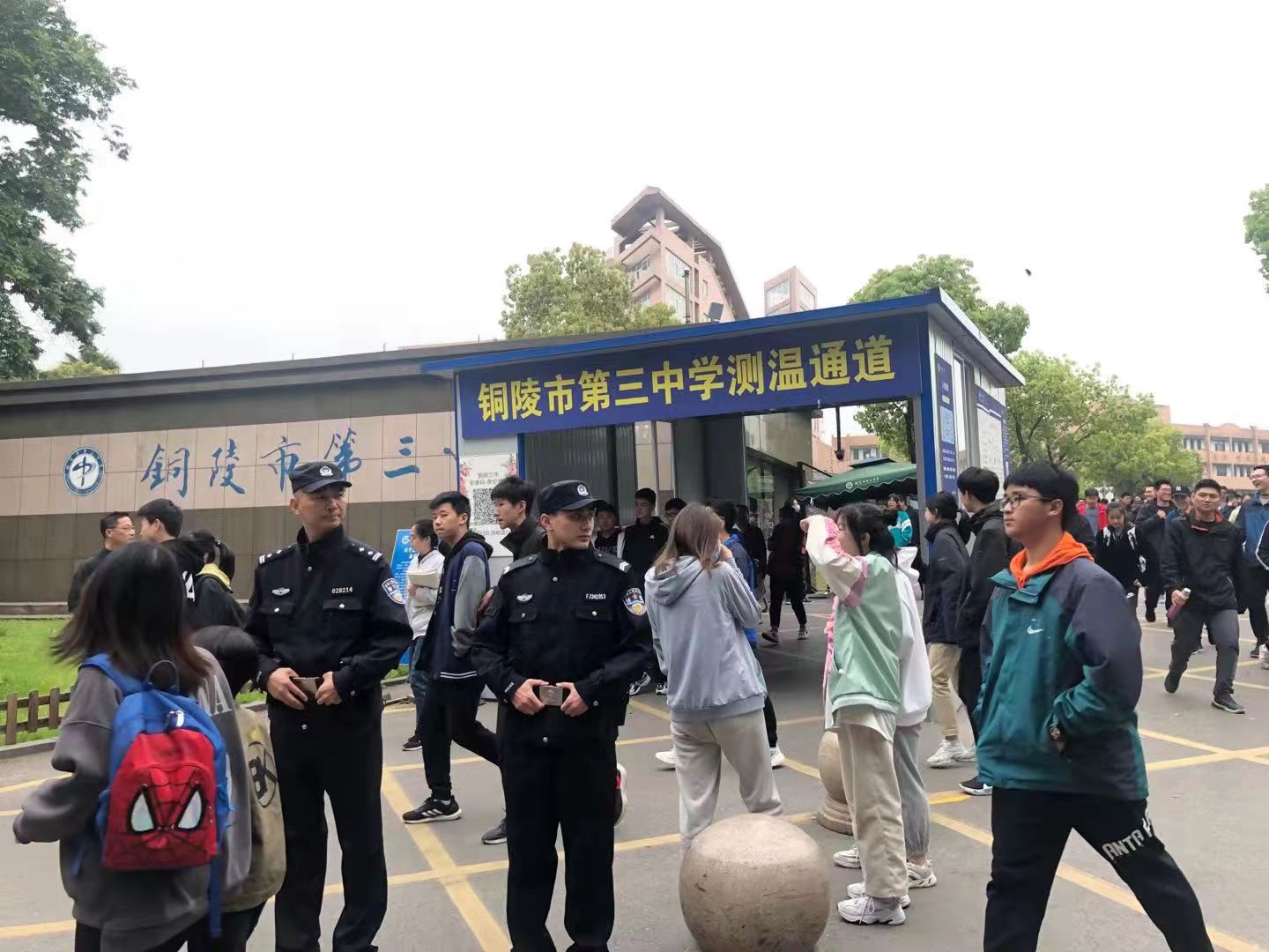 铜陵市第三中学地处市中心,这里人口密集,车流量大。过去,每到上学、放学高峰时段,学校门前狭窄的育才路总是车水马龙、人车混杂、拥堵不堪,存在着极大的交通安全隐患。现在,这里的交通拥堵状况已有所好转。无论寒冬酷暑、白天黑夜,还是刮风下雨,你总能看到一群身影,在指挥车辆有序通行,规范停车,这就是由交警、民警、特警等多警种组成的护学岗执勤队伍。他们风雨无阻地为学生保驾护航,俨然成为学校门口一道靓丽的风景线。
