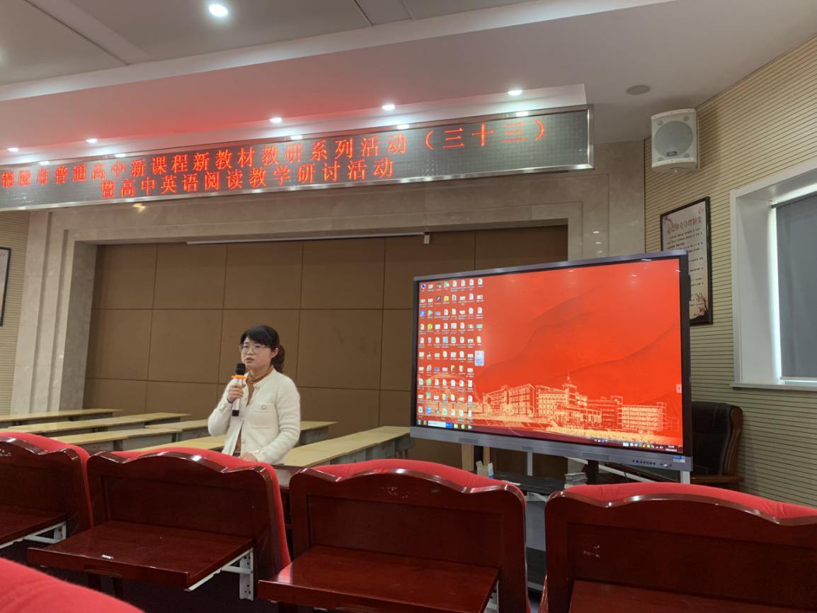 为加强我市普通高中新课程教研工作、加深教师对新教材的理解、快速进一步提升英语教师的专业素养和数学学科的教学质量。4月15日下午,高中新课程新教材教研系列活动(三十三)暨高中英语学科新教材研讨活动在市一中顺利开展。活动由市教研员章全老师主持,本次活动研讨主题为:基于主题意义下的语篇六要素整合的高中英语课堂教学。我校英语教研组长孔维带领全体英语教师参与观摩研讨。
