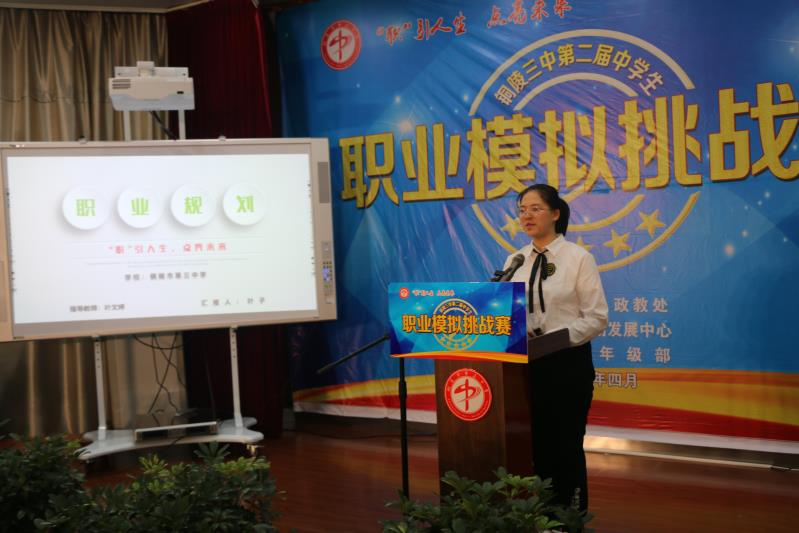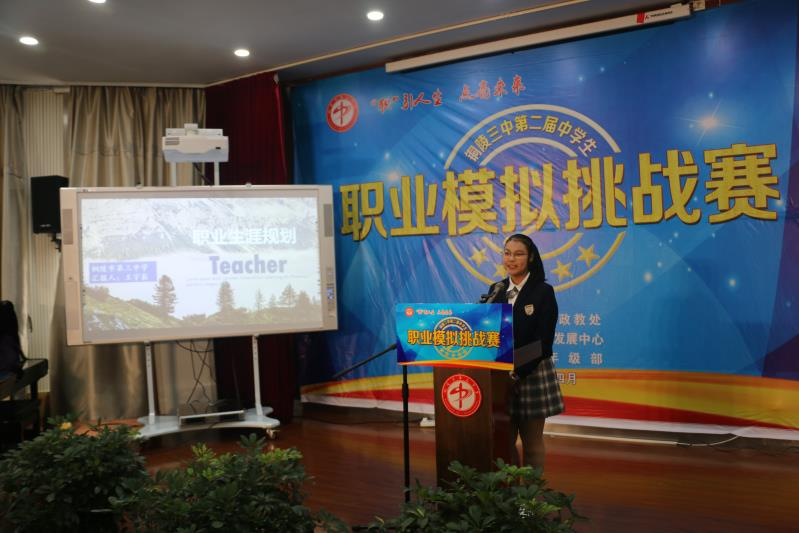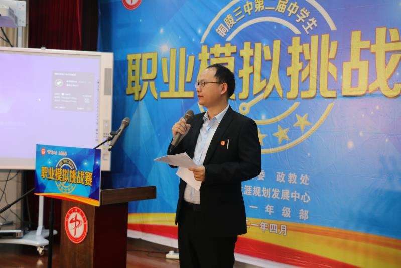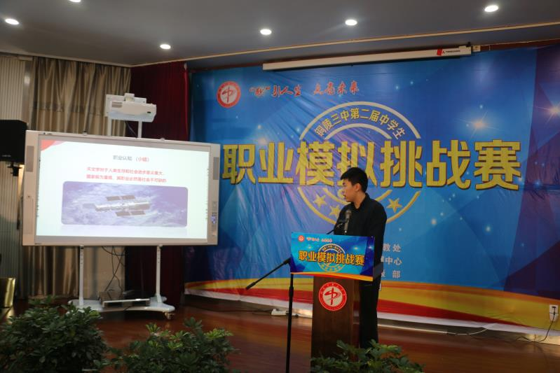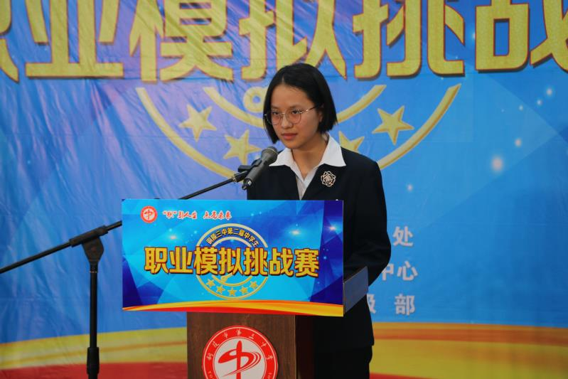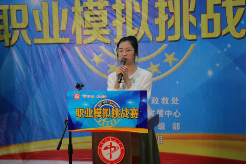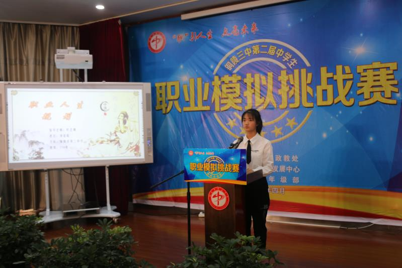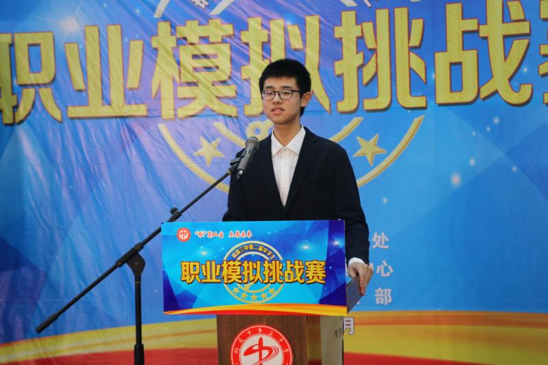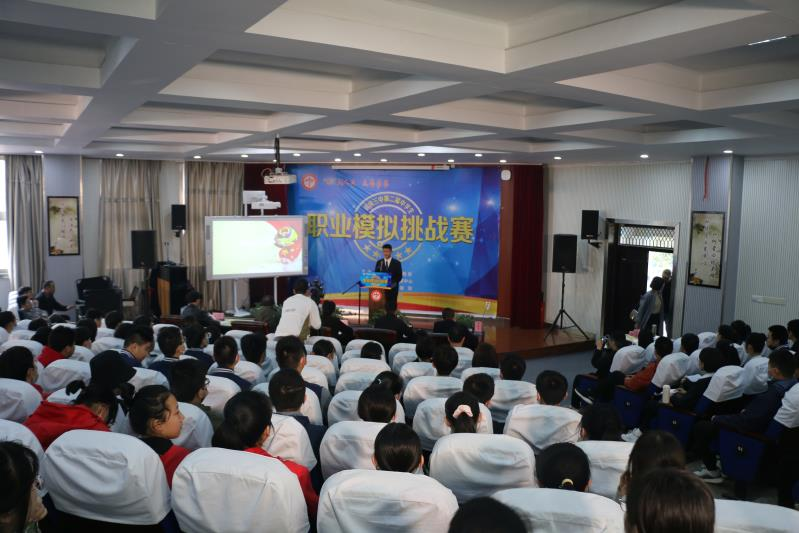 4月24日上午,我校第二届中学生职业模拟挑战赛在多功能厅顺利举办,高一年级各班学生代表和班主任共220余人到场观摩。