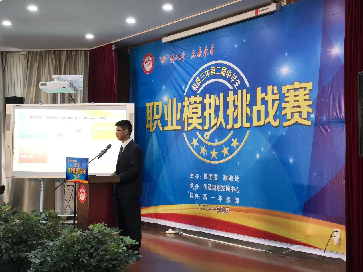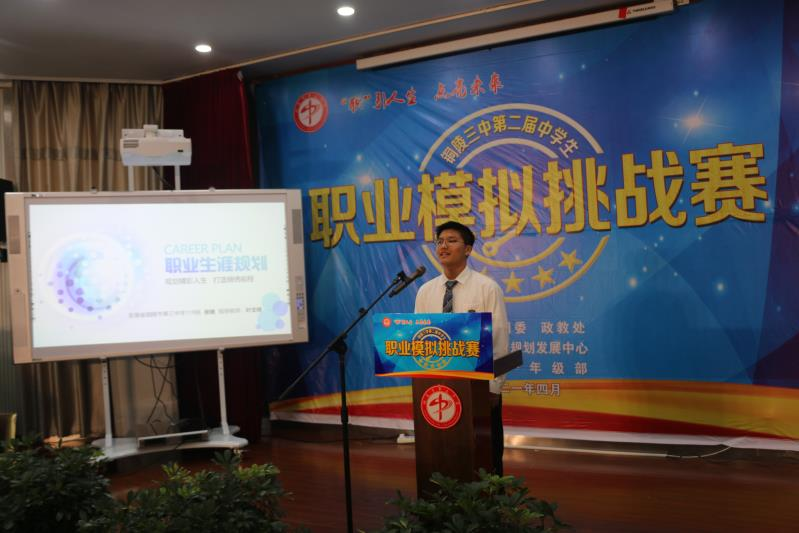 据悉,本届职业模拟挑战赛于2021年2月启动,历时2个多月的时间里,共收到高一年级参赛《职业生涯规划书》300余份,参赛作品涉及职业类别近50种,作品质量整体较高,经过数轮筛选,最后遴选出10名优秀选手进入本次的现场比赛。