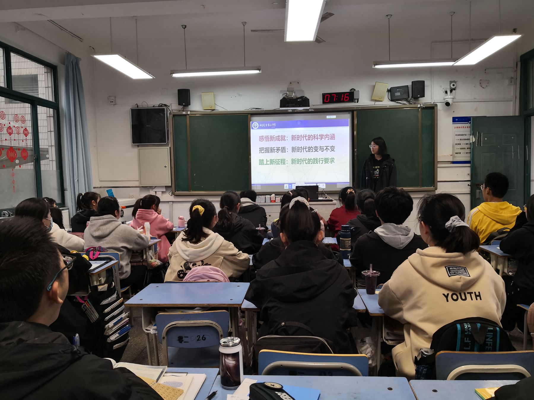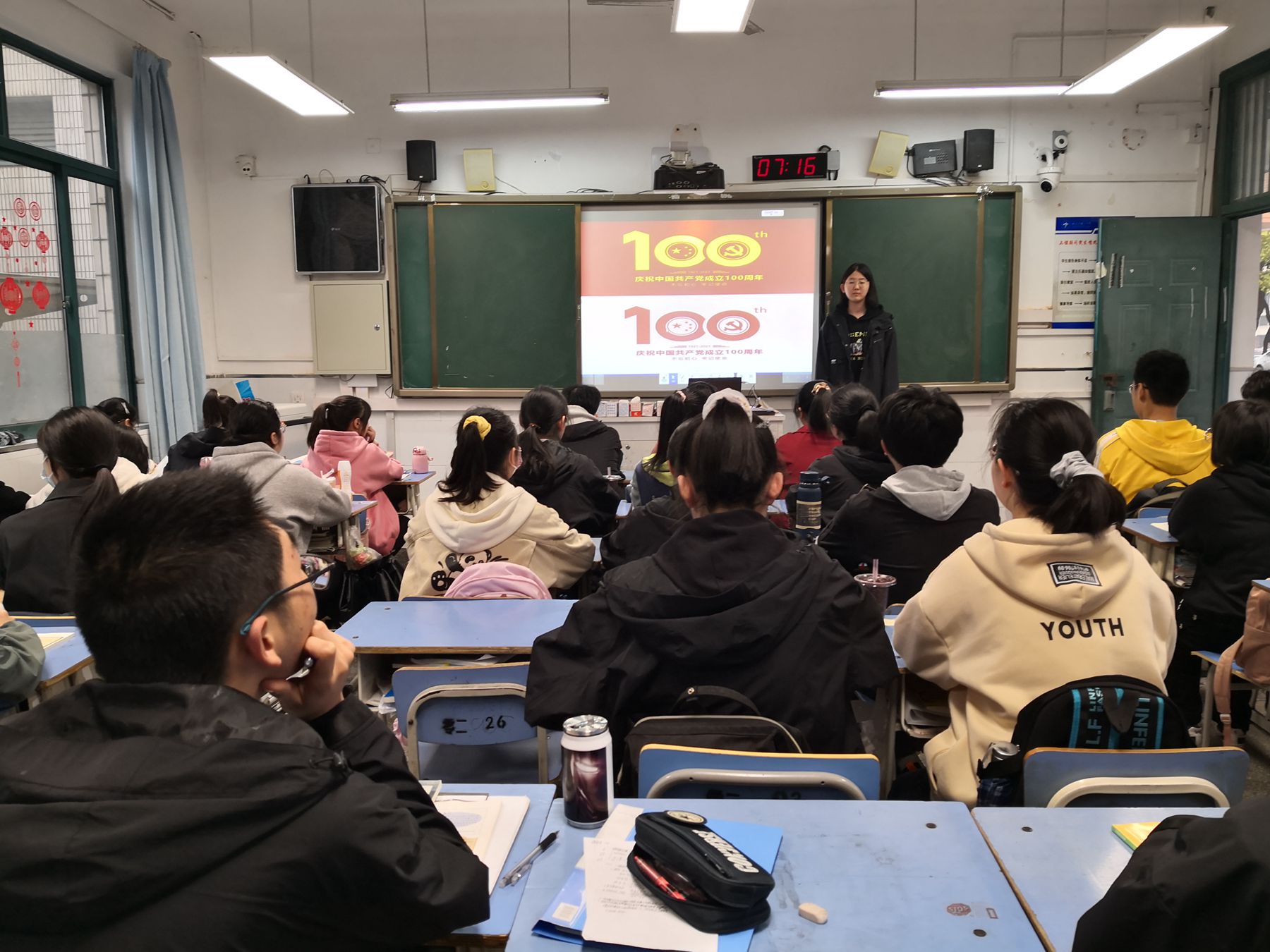 在班会上,同学们首先讲解了学习党史的重要性。加强党史知识的学习,是新时期党的建设的需要,也是适应时代发展的现实需要,同时也是建设中国特色的社会主义现代化建设事业的需要。其次,主持人通过PPT让同学们了解建党以来的重要时期和阶段。例如,新民主主义革命时期、从去年的疫情案例来总结中国共产党的重要作用,让同学们知道学习党史的意义。大家学习党的光辉历程,可以从历史中汲取智慧和力量,以继承党的成功经验和优良传统。