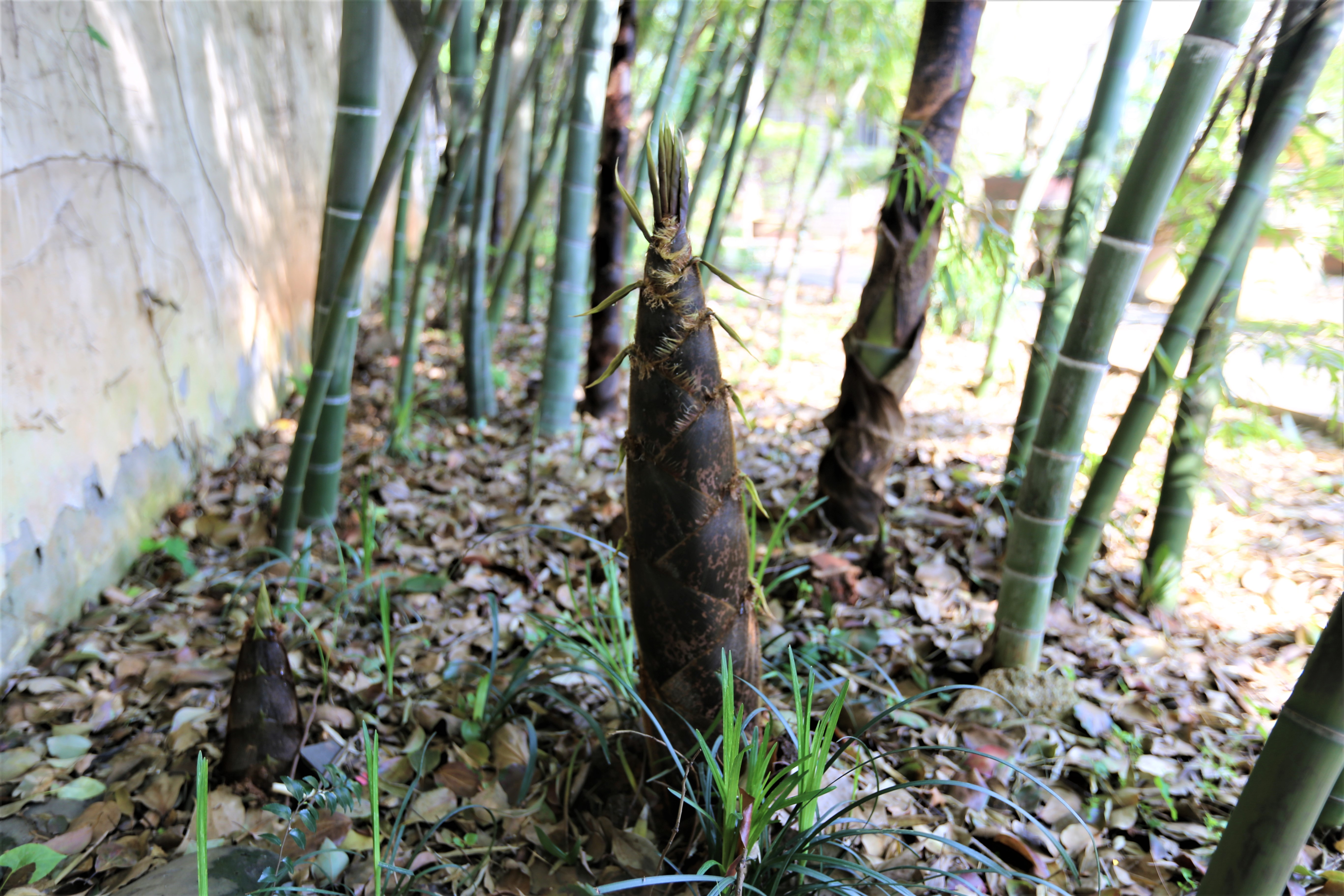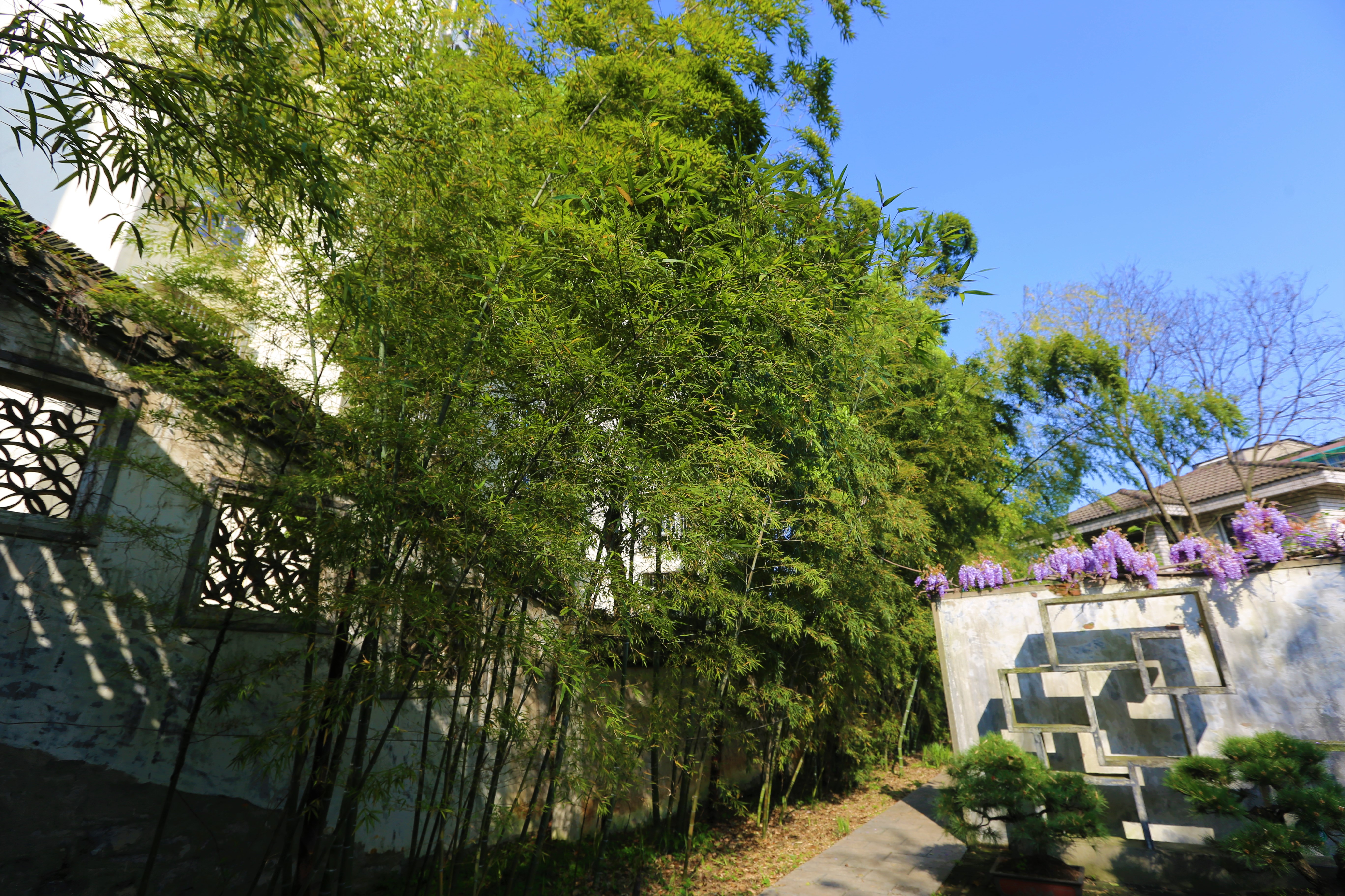 三中这片竹林位于盆景园的内墙之侧,从上世纪80年代起,三中在这里陆续栽培了毛竹、紫竹、凤尾竹、长枝竹等品种。竹子自然繁衍,顺墙角迎着阳光生长,顽强地在风雨中拔节。春日里,这里绿意盎然,竹笋破土,生命接替,翠竹清健,竹林芬芳,欣欣向荣,给人以斗志昂扬,阔步前进的英雄之气概!