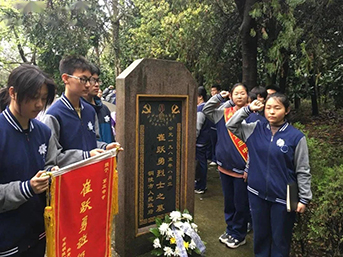 今年4月1日,在铜陵市笠帽山烈士陵园,该校第16届“崔跃勇班级”交接仪式在庄严肃穆的氛围中有序进行着,高一(10)班师生代表从上一届“崔跃勇班级”高三(9)班接过班旗,并进行宣誓,“我将矢志不移,传承先烈精神,继承光荣传统,刻苦学习,努力拼搏,为实现中华民族伟大复兴而不懈奋斗……”铮铮誓言响彻陵园上空。
