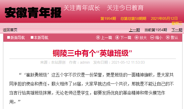 “崔跃勇是从三中走出去的学生,用他的事迹来教育和感化学生,更有亲和力和共情力,学生更能听进去、学进去”。章学标说,回顾往届的“崔跃勇班级”,每一届学生都以这份荣誉为使命,努力从英雄身上汲取能量,助力自身的成长。如今“崔跃勇班级”已经成为该校的一面旗帜,在各项校园活动中都发挥着榜样的作用。