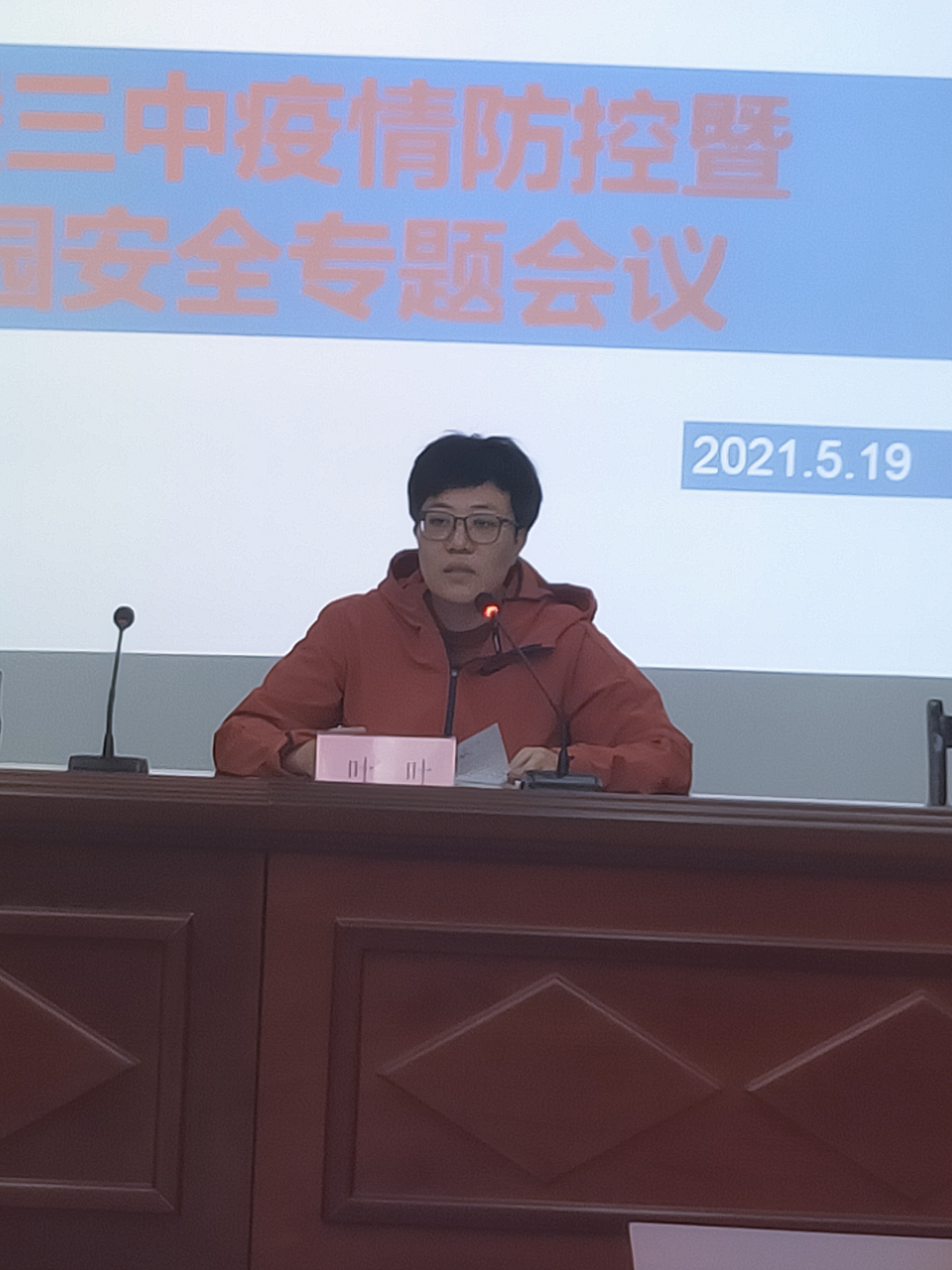 2021年5月19日下午,我校在综合楼五楼多媒体会议室召开疫情防控暨校园安全专题工作会议,进一步研究部署疫情防控工作。校党委副书记叶叶,校党委委员、副校长张国荣,校党委委员、政教处主任章学标出席会议,全体班主任参加会议,保卫科负责人凌兴民主持会议。