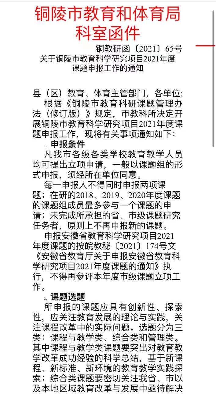 关于铜陵市教育科学研究项目2021年度 课题申报工作的通知