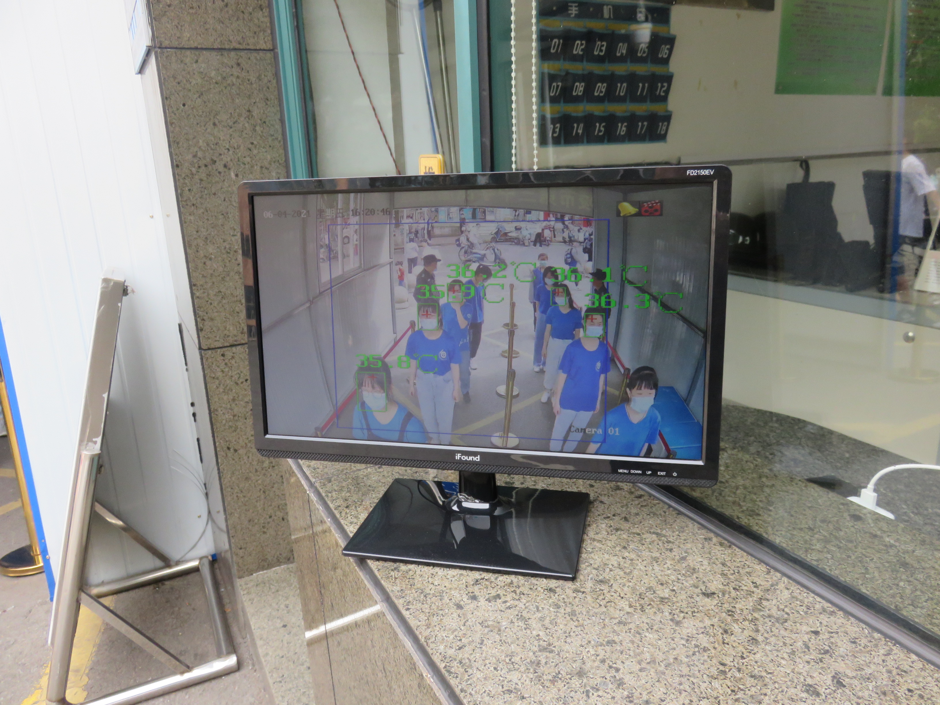 场景2:考点发出入场信号,考生有序入场,工作人员观测测温屏幕,人工防止漏测。