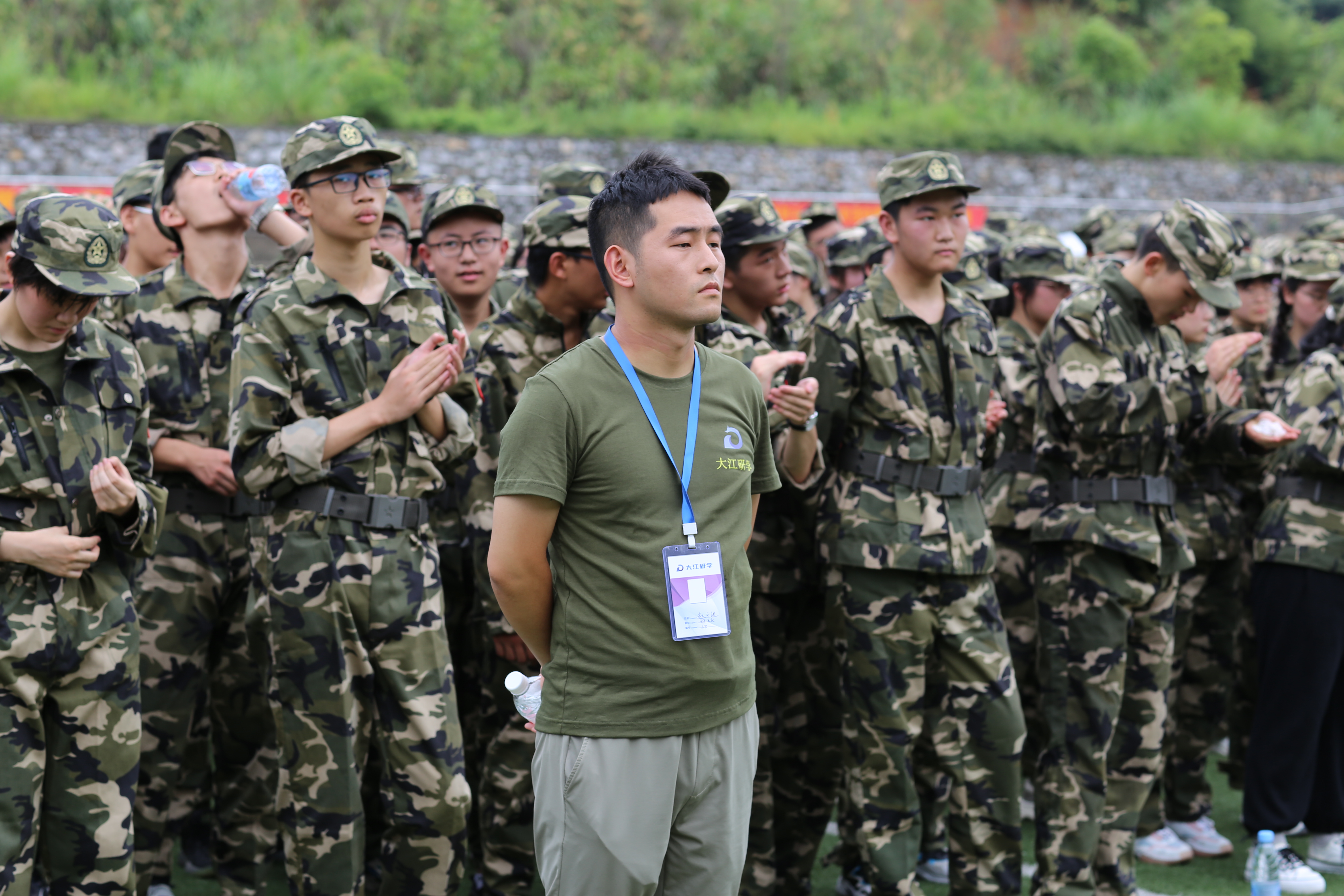 在大通营地,铜陵三中师生们精诚合作,面对眼前的艰难险阻、浅滩暗礁,三中师生拧成一股绳,燃烧精神的火炬,勇于担当、努力超越、甘于奉献,大家万众一心,凝聚起攻坚克难的智慧和力量。在训练场上、在营房、在食堂,大家扬起精神的风帆,发出三中的光和热,一起收获精神的成长。2020级学生,在拓展实践中正孕育更有战斗力和创造力精神。