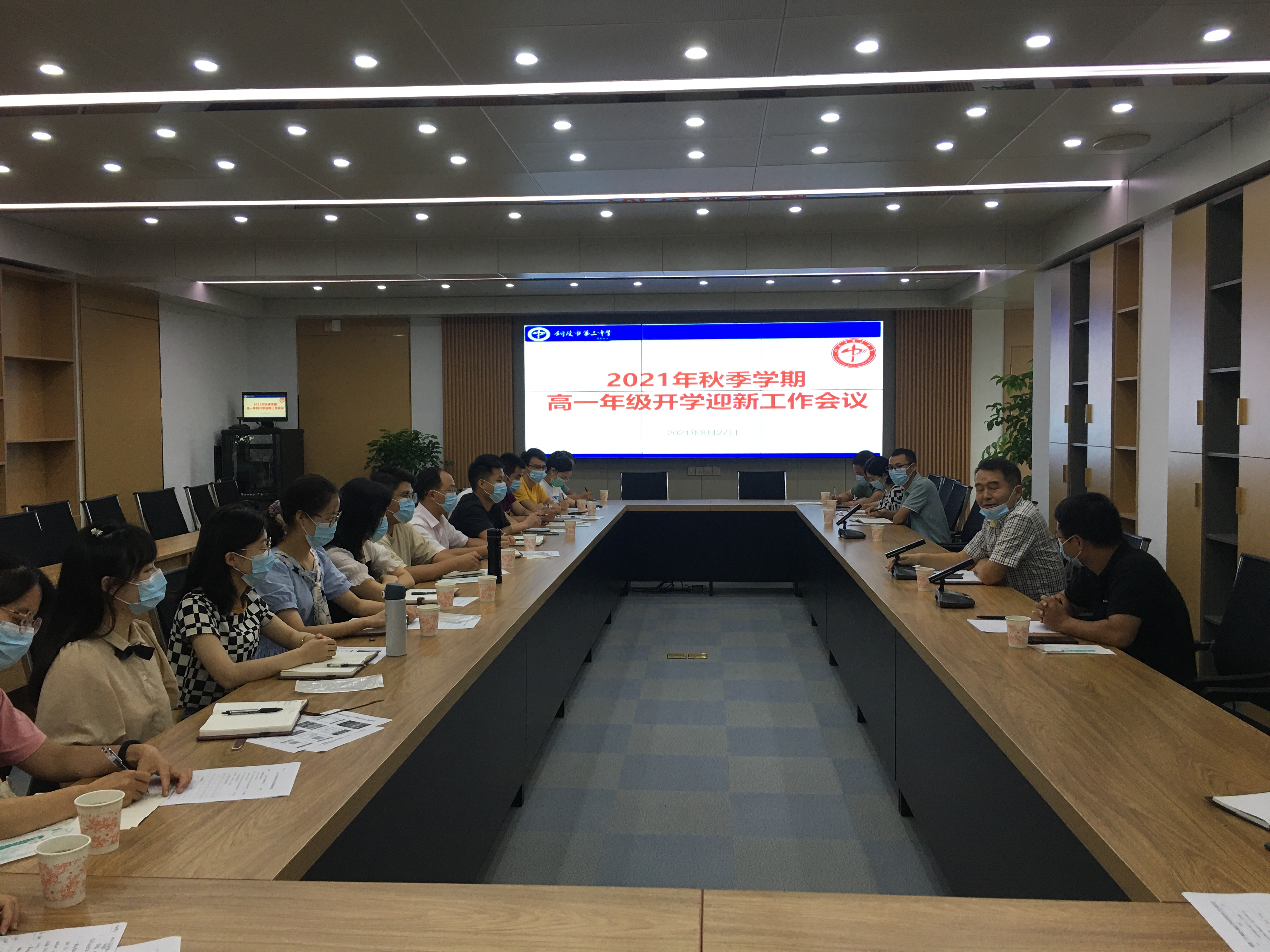 8月27日下午三时,我校高一年级在综合楼五楼大会议室召开2021年秋季学期开学迎新工作会议。校党委书记、校长叶叶,校党委委员、政教处主任章学标,保卫科负责人凌兴民,政教处左飞,高一年级部部长方进和高一年级全体班主任参加了本次会议,会议由章学标主持。