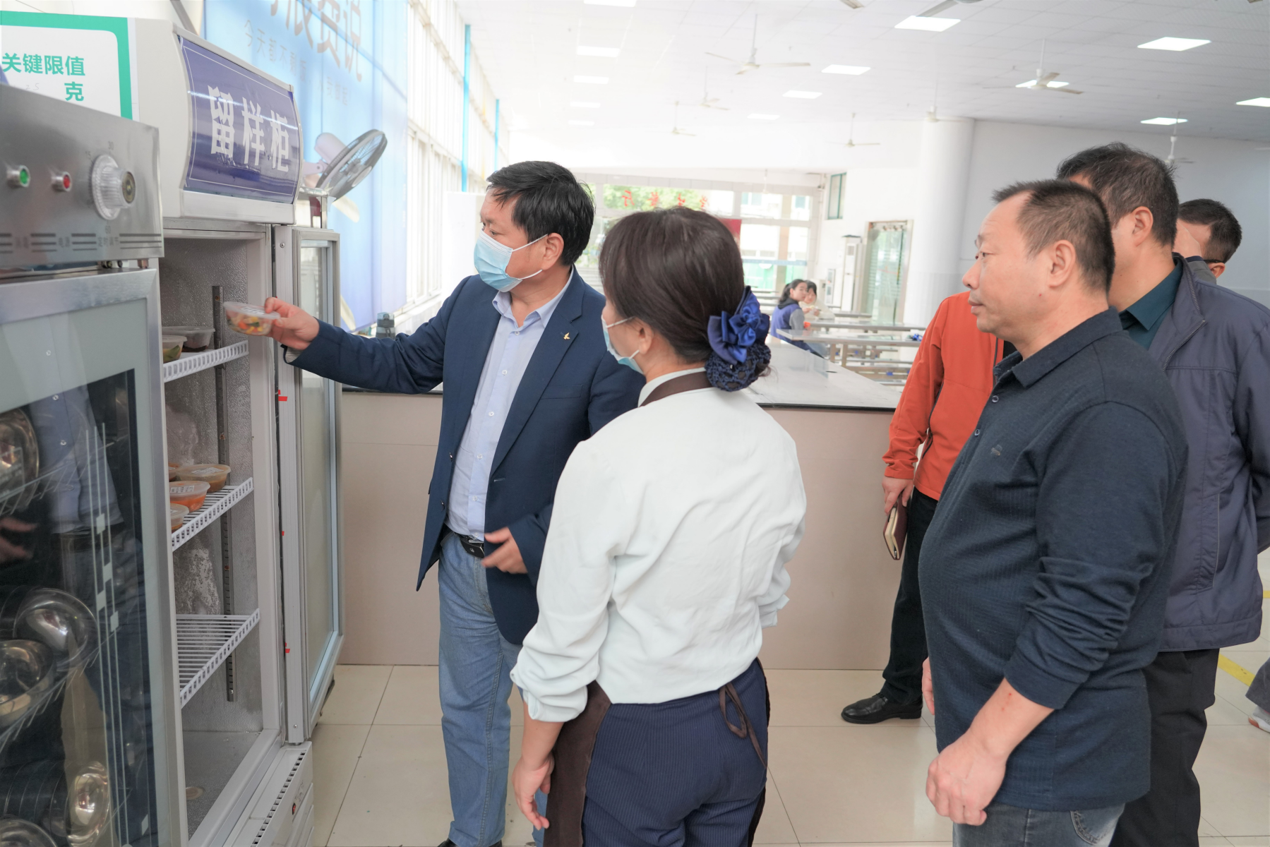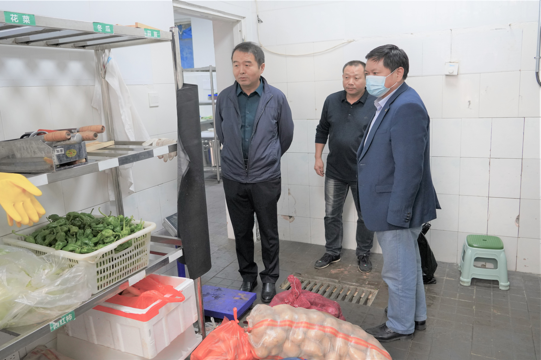 在学校食堂,王合进一行深入后厨操作间,对食堂环境卫生、加工过程控制、餐具清洁消毒、原料采购查验、从业人员健康管理等方面进行检查。王合进认真查看了食品留样,并再三叮嘱食堂管理人员严格落实食品安全主体责任,认真组织开展食品安全自查,切实保障师生“舌尖上的绝对安全”。