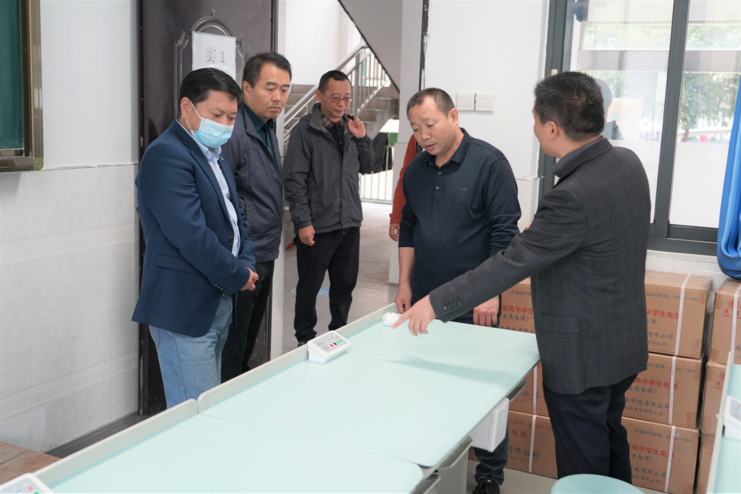 在物理、生物、化学实验室,王合进一行对危险化学品、插座用电、安全标识、实验室设施与环境等进行了重点检查。王合进强调,实验室务必要严格落实实验室安全规范化管理,要提高师生安全意识,加强实验室安全教育,严格按照操作规程开展实验,全力确保学校安全运行。针对管理人员提出的教学面积不足情况,检查组答应立行研究解决。