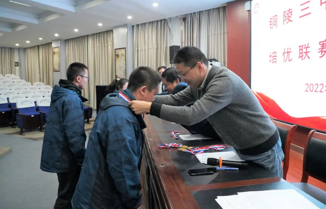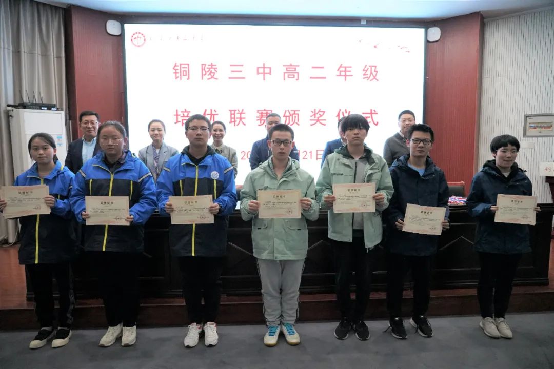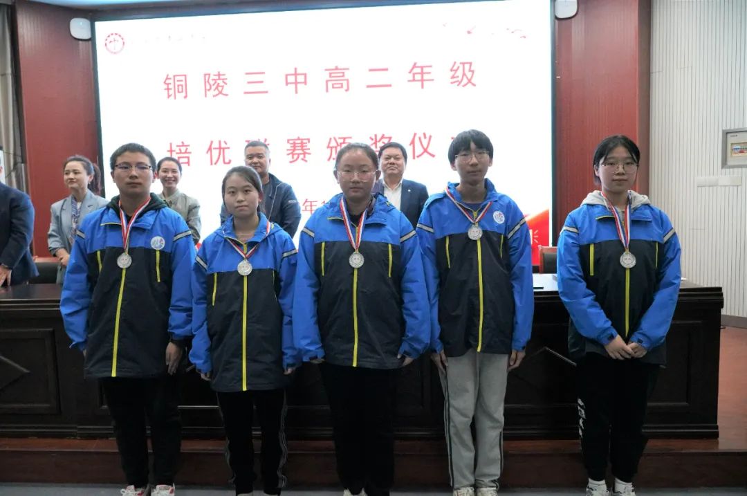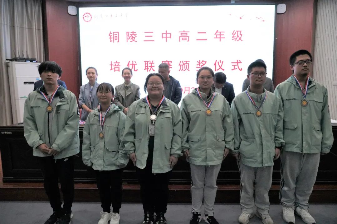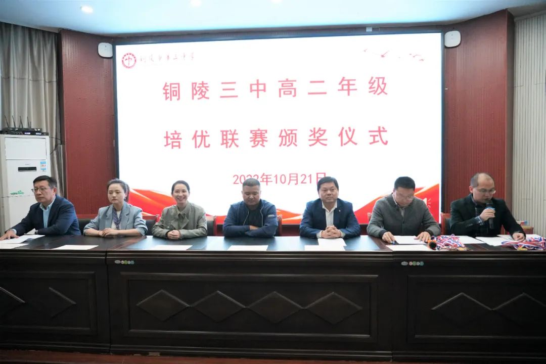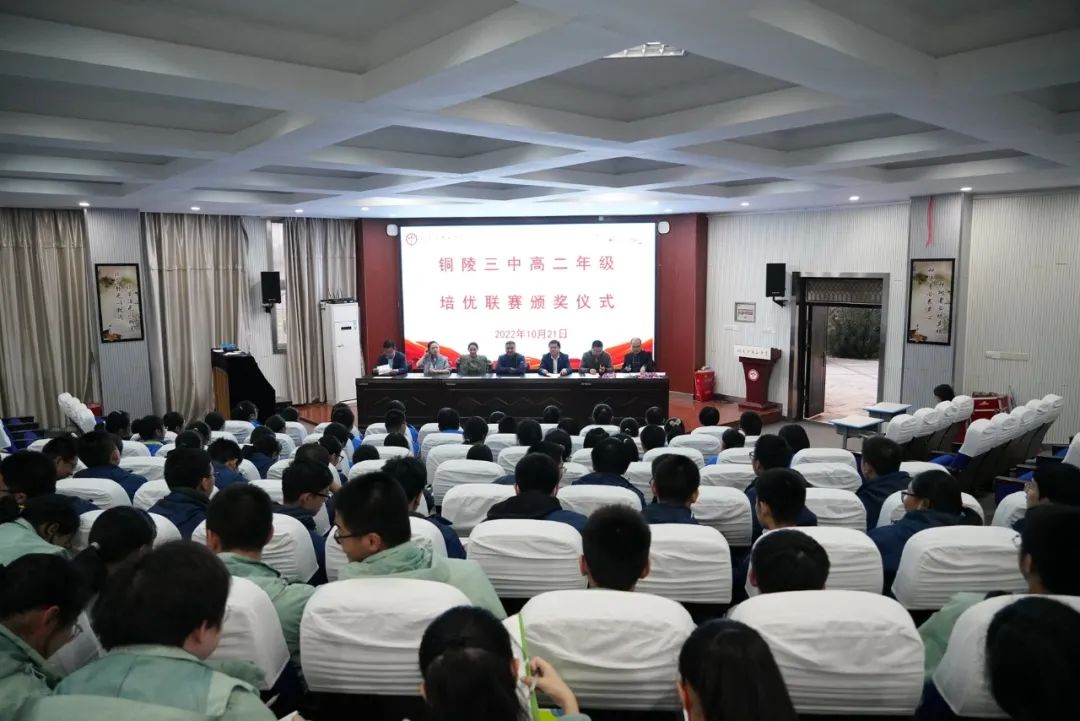 10月21日下午,我校在多功能厅举行高二年级培优联赛(秋季)颁奖仪式。校党委副书记、副校长王合进,校党委委员、副校长徐松成,课程与教学中心主任王俊朝,高二小班班主任姜贵红、杨奇、张蓉及参与联赛的全体同学出席仪式,培优部负责人丁学智主持颁奖仪式。