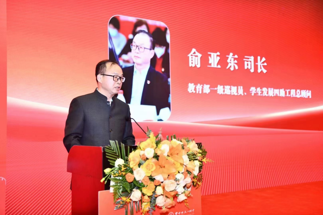 教育部一级巡视员、学生发展四助工程总顾问俞亚东发表讲话,他在讲话中指出,升学是高中高校对接工作的关键环节,要全面学习贯彻党的二十大精神,落实立德树人根本任务,坚持对接好政府、家庭、社会协同育人机制,对接好各级学校在育人工作中的关键环节,解决好学生急难愁盼问题,开展好精准对接工作。