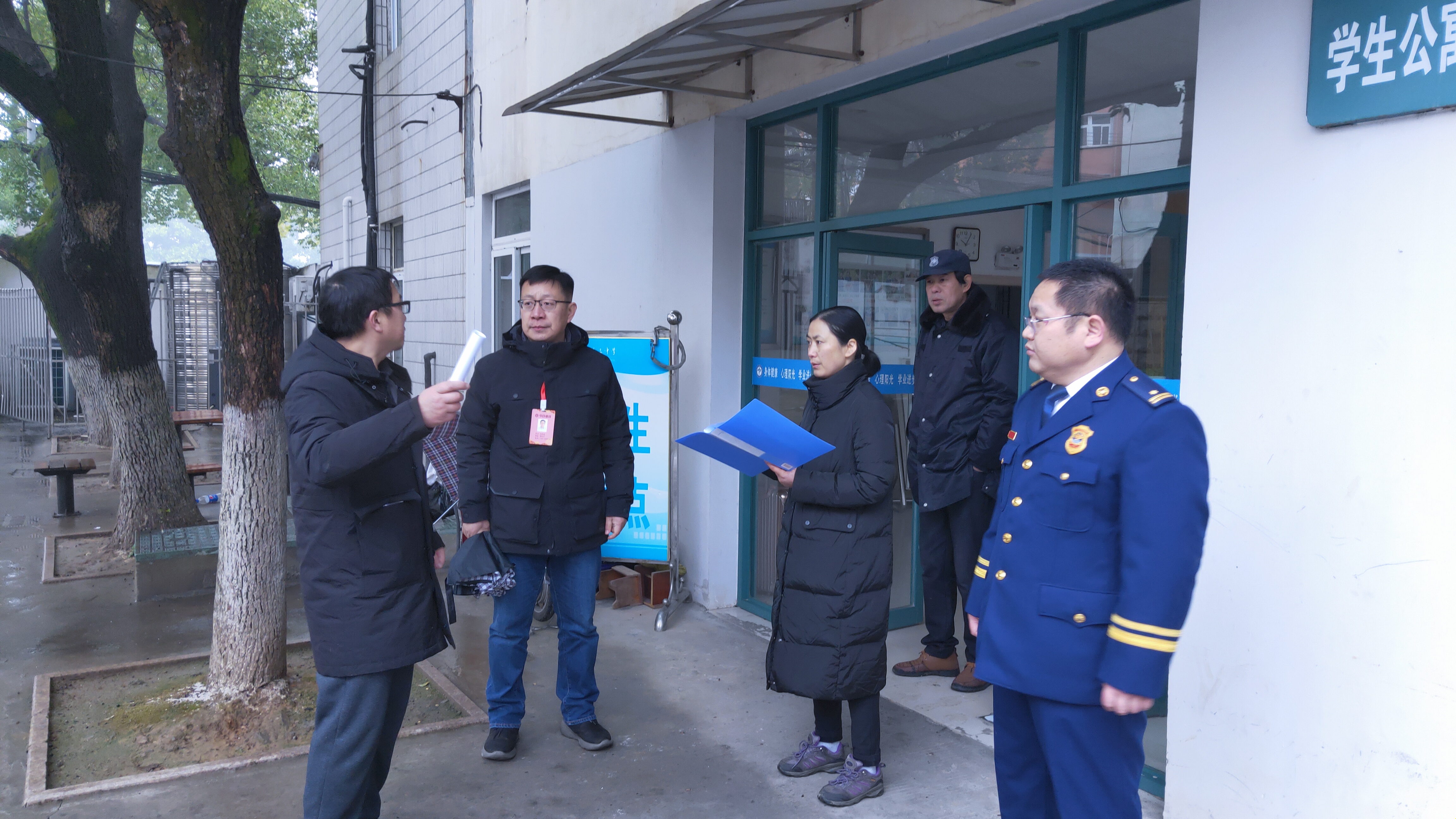 元月25日,校党委委员、副校长徐松成率领由保卫科、总务处、政教处、宿管中心等各相关责任处室负责人组成的检查组,特别邀请开发区消防大队大队长梁芝松参加检查指导。检查组一行深入学校出租门面房(超市)、学生宿舍、食堂、实验室、信息中心、教师(行政)办公室、图书室、行政楼负一层仓库等所有重点区域区域,做到校园消防安全隐患排查全面覆盖,不留死角。
