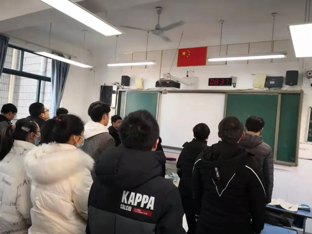 因开学期间疫情防控要求,大课间在各班教室举行了室内升旗仪式。雄浑的国歌响彻三中校园,映衬着鲜艳的五星红旗。随后高一年级班主任代表汪军生老师在广播中作了《时代向前,吾辈向上》的国旗下讲话。