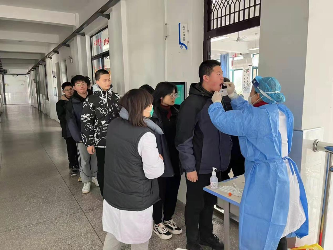 此外,为进一步筑牢校园疫情防控安全防线,确保春季开学安全有序,我校从7:30开始安排防疫工作人员入班进行核酸采样检测,各班主任在班级宣传防疫知识。