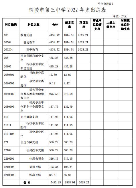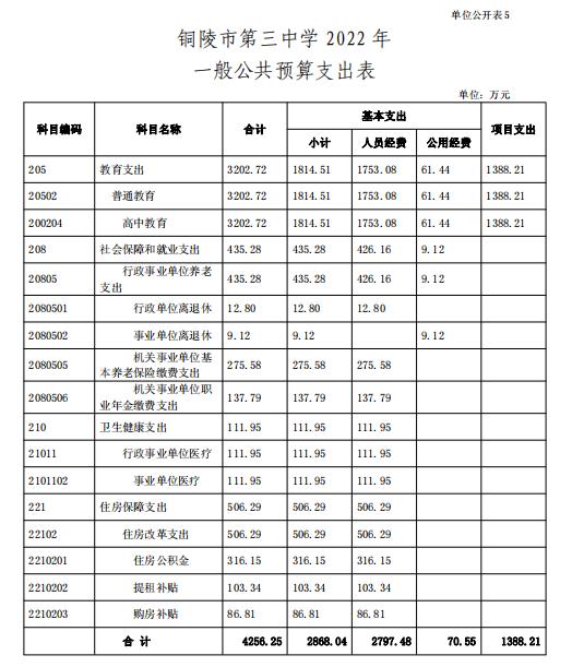 5.铜陵市第三中学 2022 年一般公共预算支出表