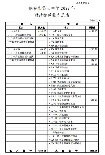 4.铜陵市第三中学 2022 年财政拨款收支总表