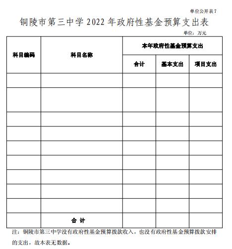 7.铜陵市第三中学 2022 年政府性基金预算支出表
