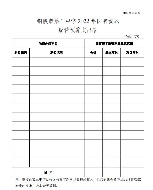 8.铜陵市第三中学 2022 年国有资本经营预算支出表