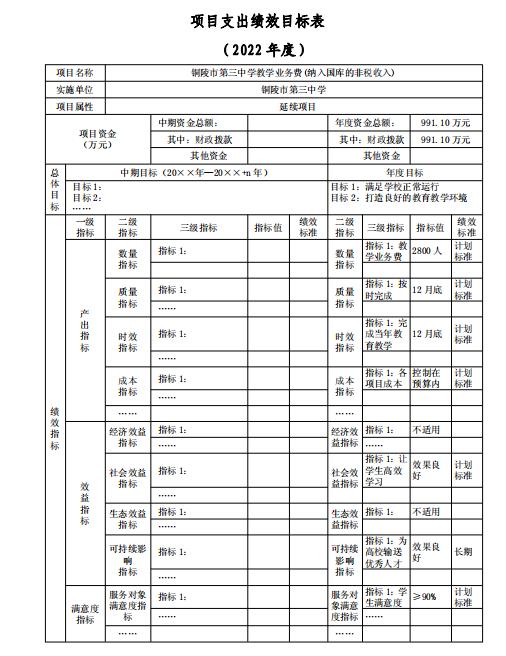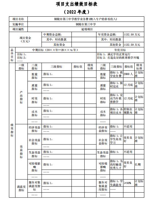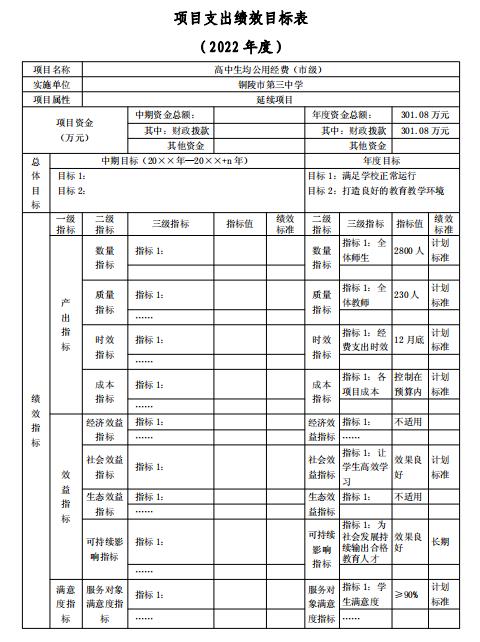 (7)绩效目标。2022 年满足学校正常运行,有效推动学校发展,为师生创造良好的教育教学环境。