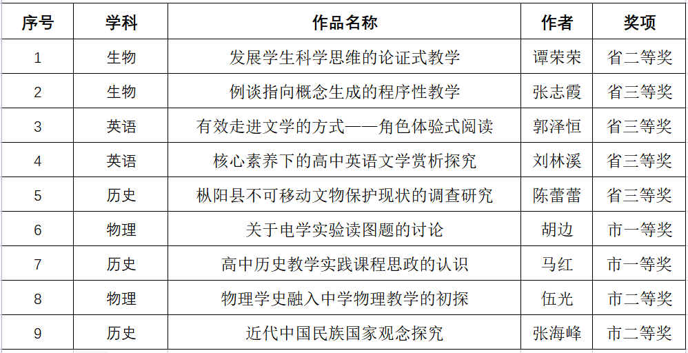 在此,向获奖教师和所在教研组表示热烈的祝贺!