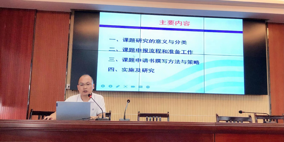 丁老师结合自身丰富的课题主持经历,从课题研究的意义与分类、课题申报流程及准备工作、课题研究申请书的撰写方法与策略、课题实施与研究四个方面娓娓道来,内容干货满满,讲解深入浅出、系统全面,给青年教师提示了很多注意事项以及如何避免“踩雷”,指导性和实操性强,让参训教师们受益匪浅。