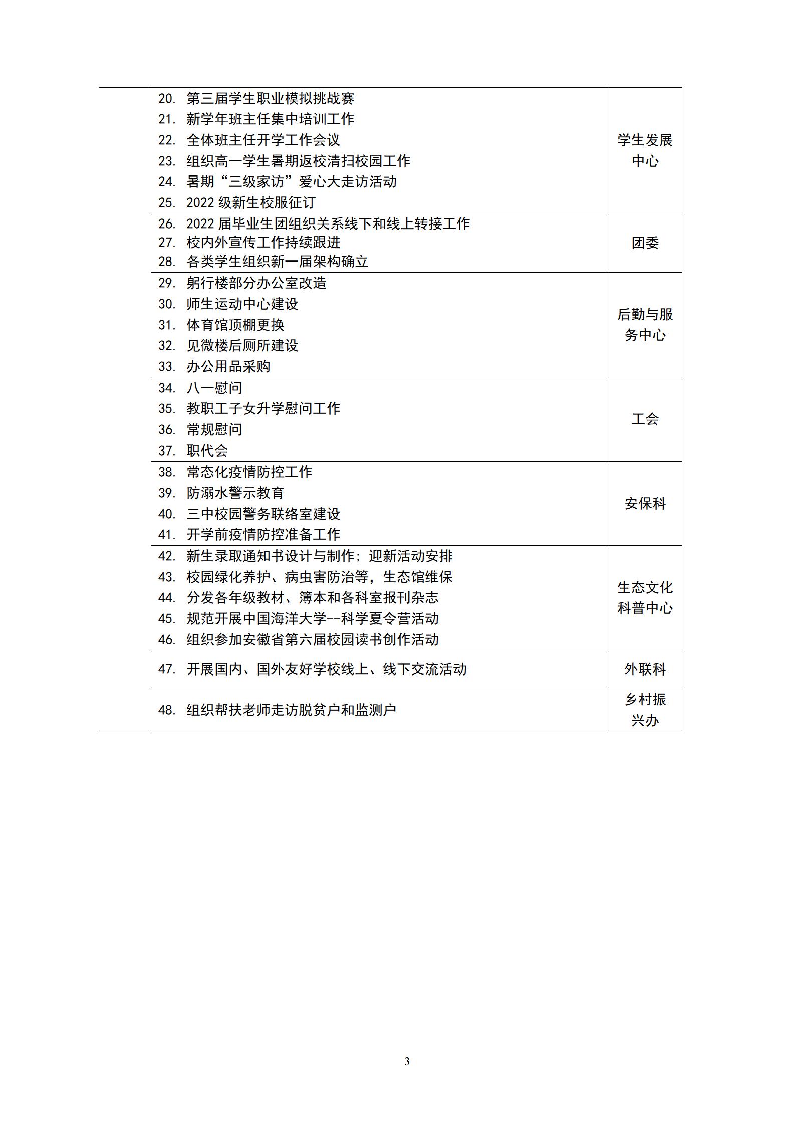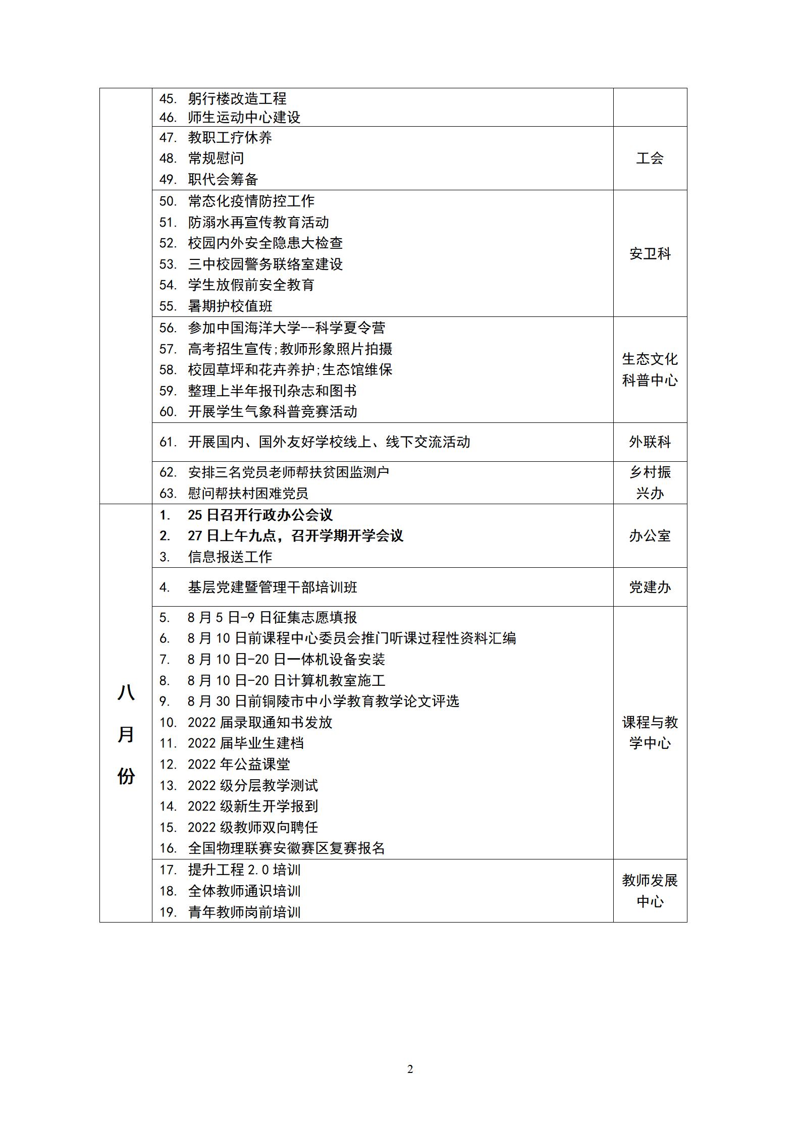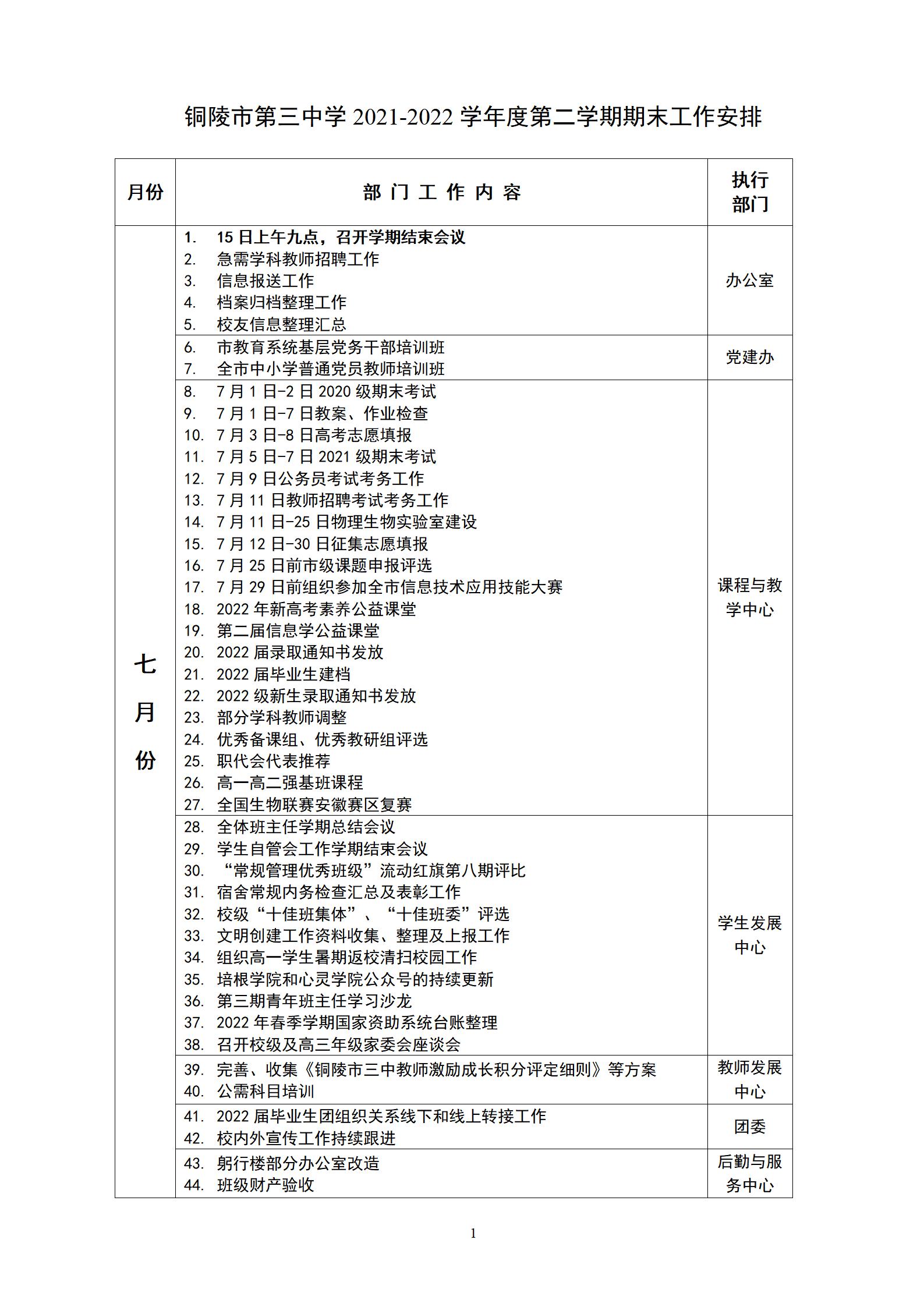 铜陵市第三中学2021-2022学年度第二学期期末工作安排