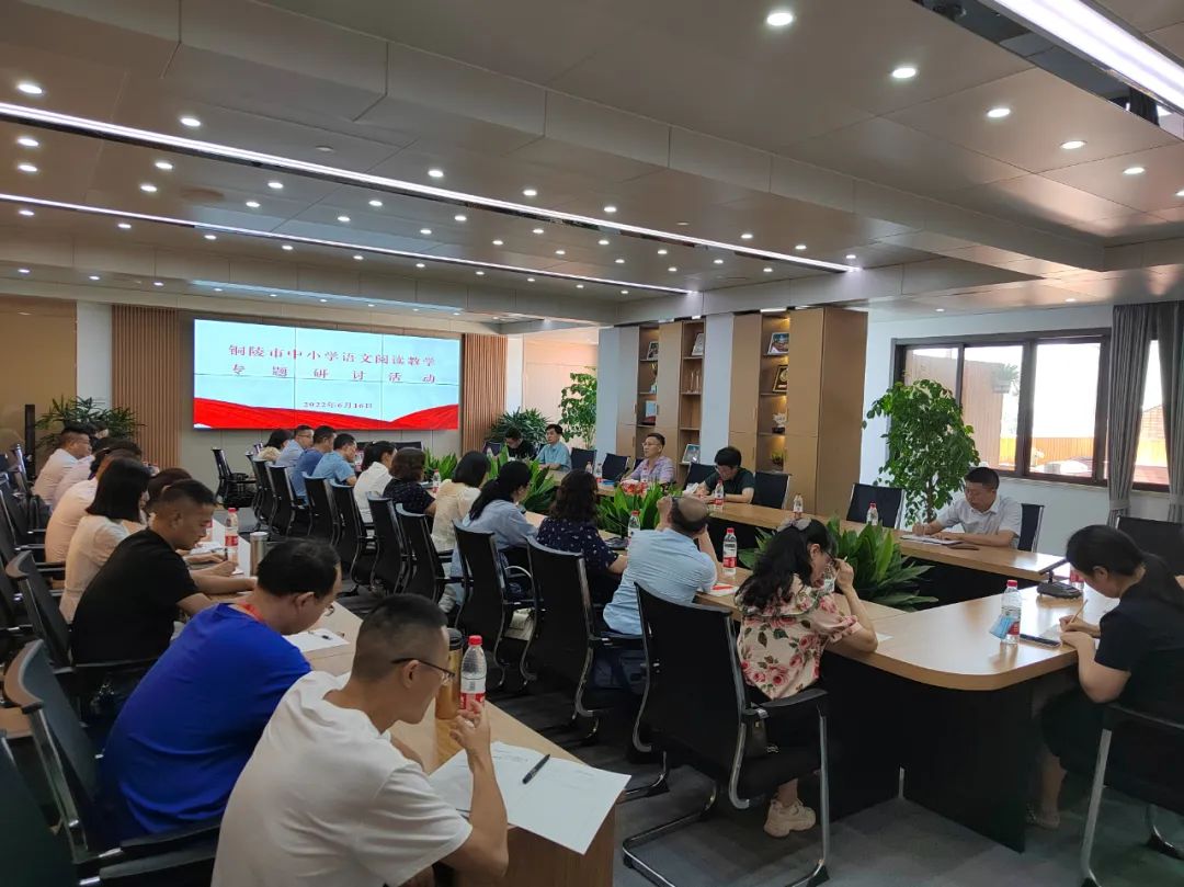 6月16日下午,铜陵市中小学语文阅读教学专题研讨活动在我校躬行楼五楼大会议室召开,此次会议由市教体局教科所语文教研员、正高级教师刘志胜主持召开,市直及县区教研员、部分中小学语文教研组长、语文教师身份的校长们参加了会议。我校党委书记、校长叶叶出席会议并致辞。