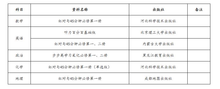 铜陵三中2022级高一第一学期部分学科“一科一辅”资料确认单
