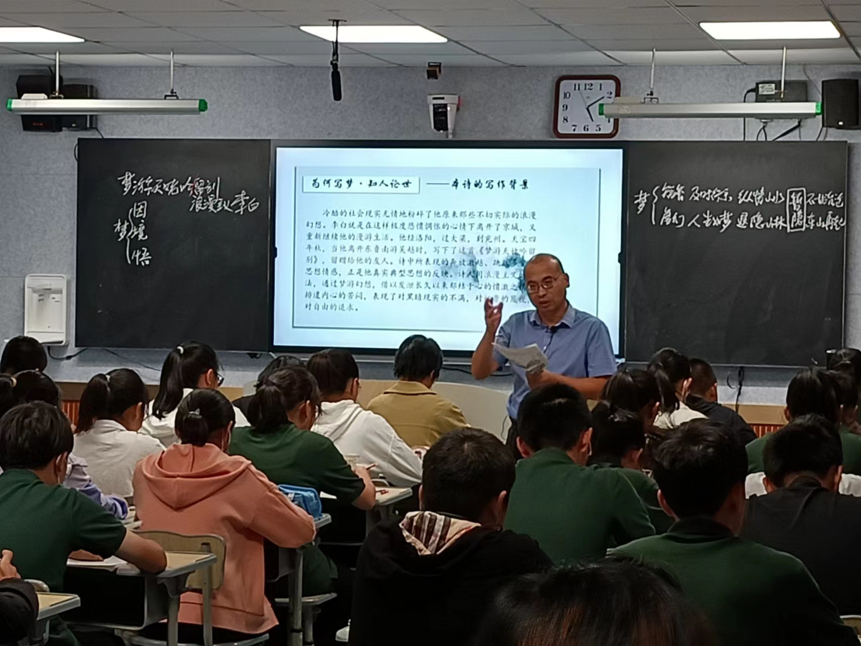 市教研员刘志胜老师亲临指导,全市兄弟学校40多位老师参加交流研讨。我校汪春生、苏頔、乔红胜老师分别展示《归园田居》、《大卫科波菲尔》、《梦游天姥吟留别》课堂教学,精彩纷呈。