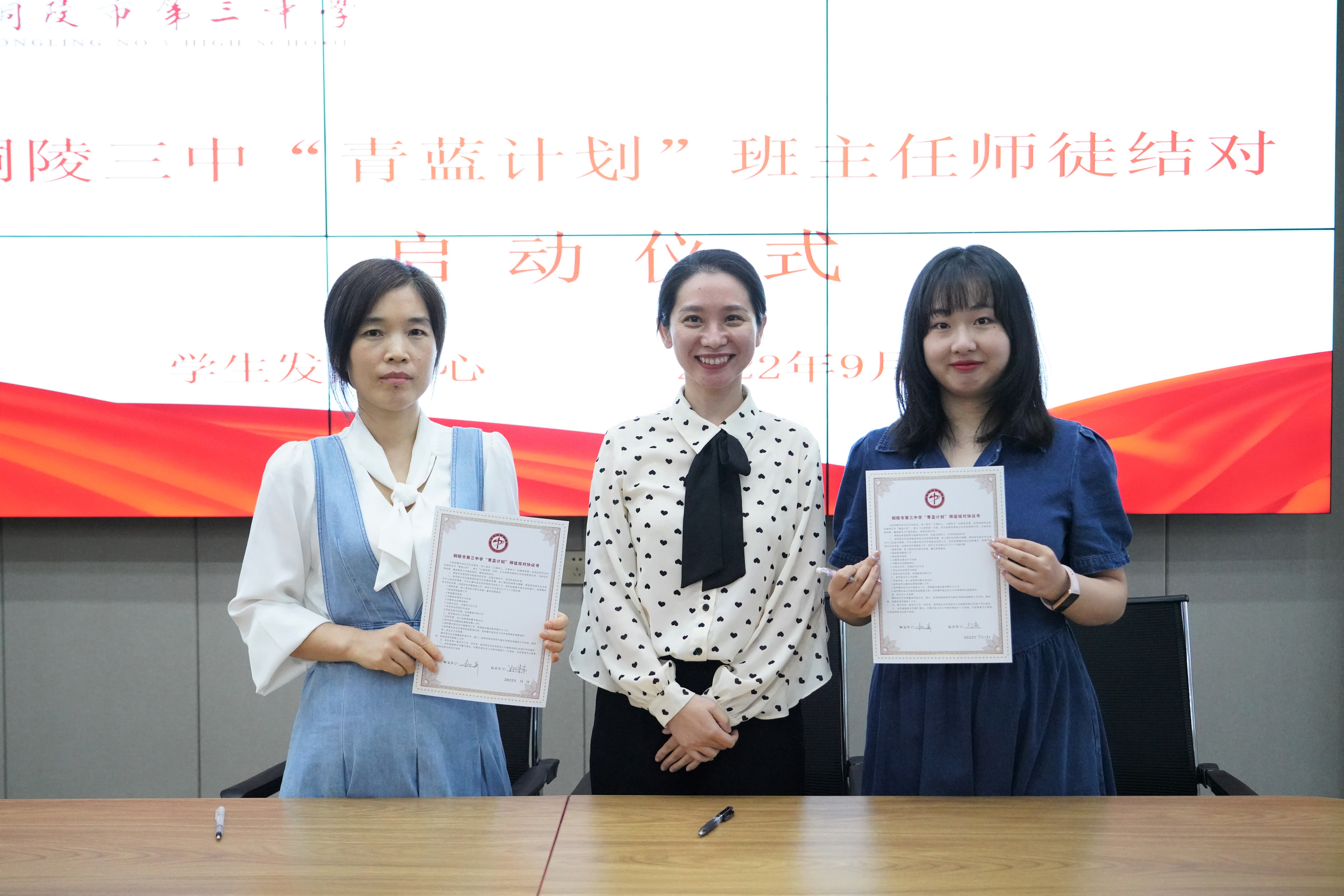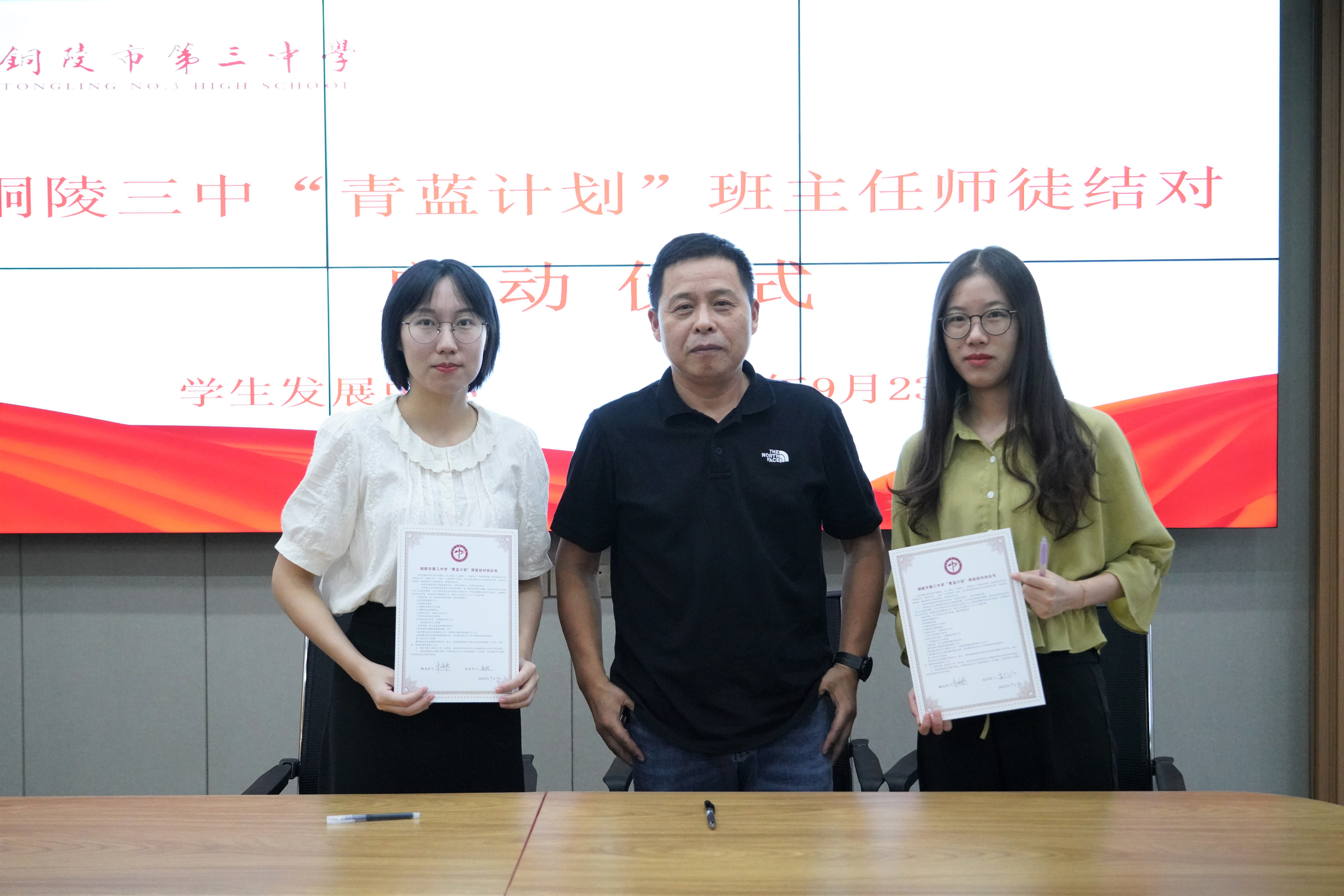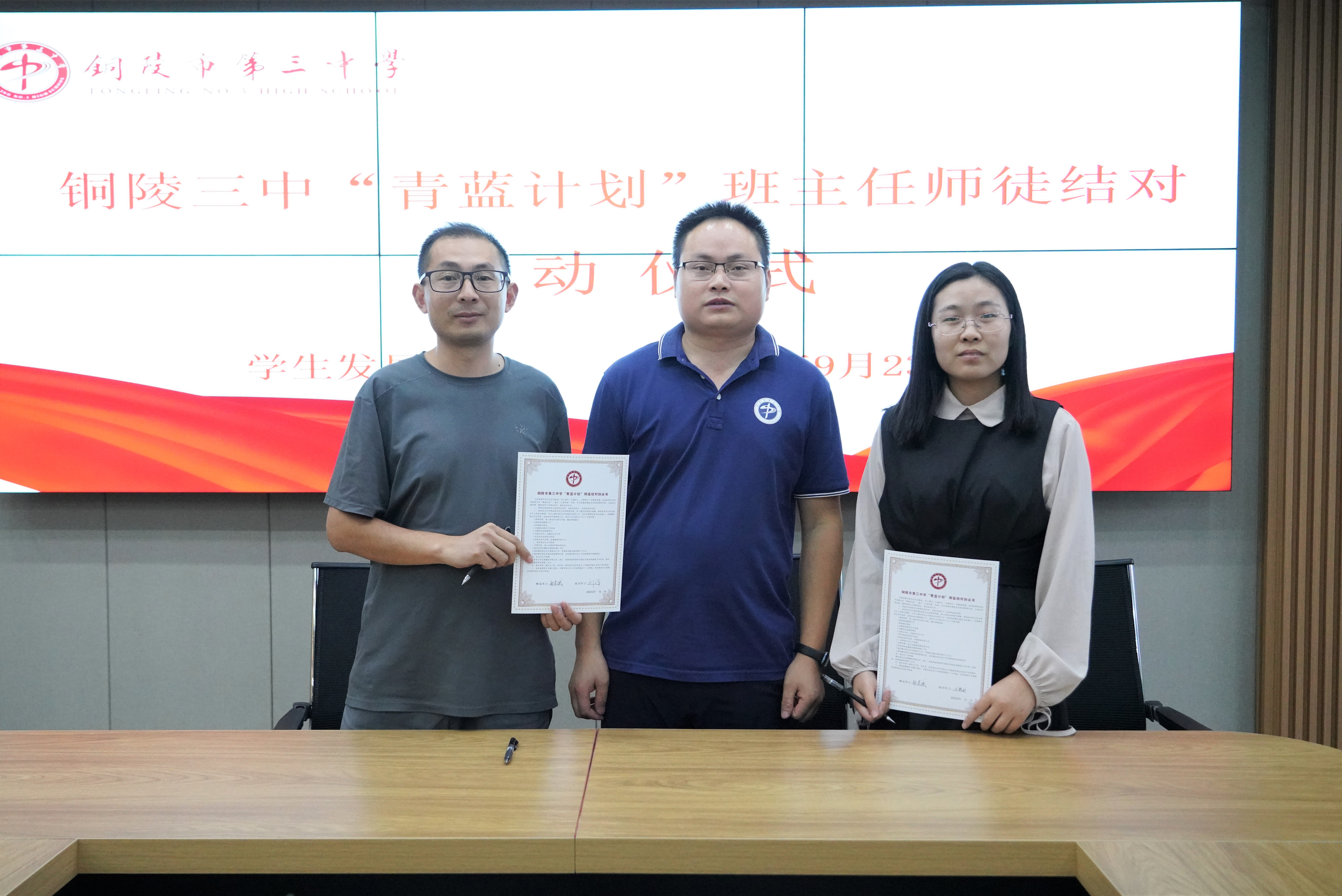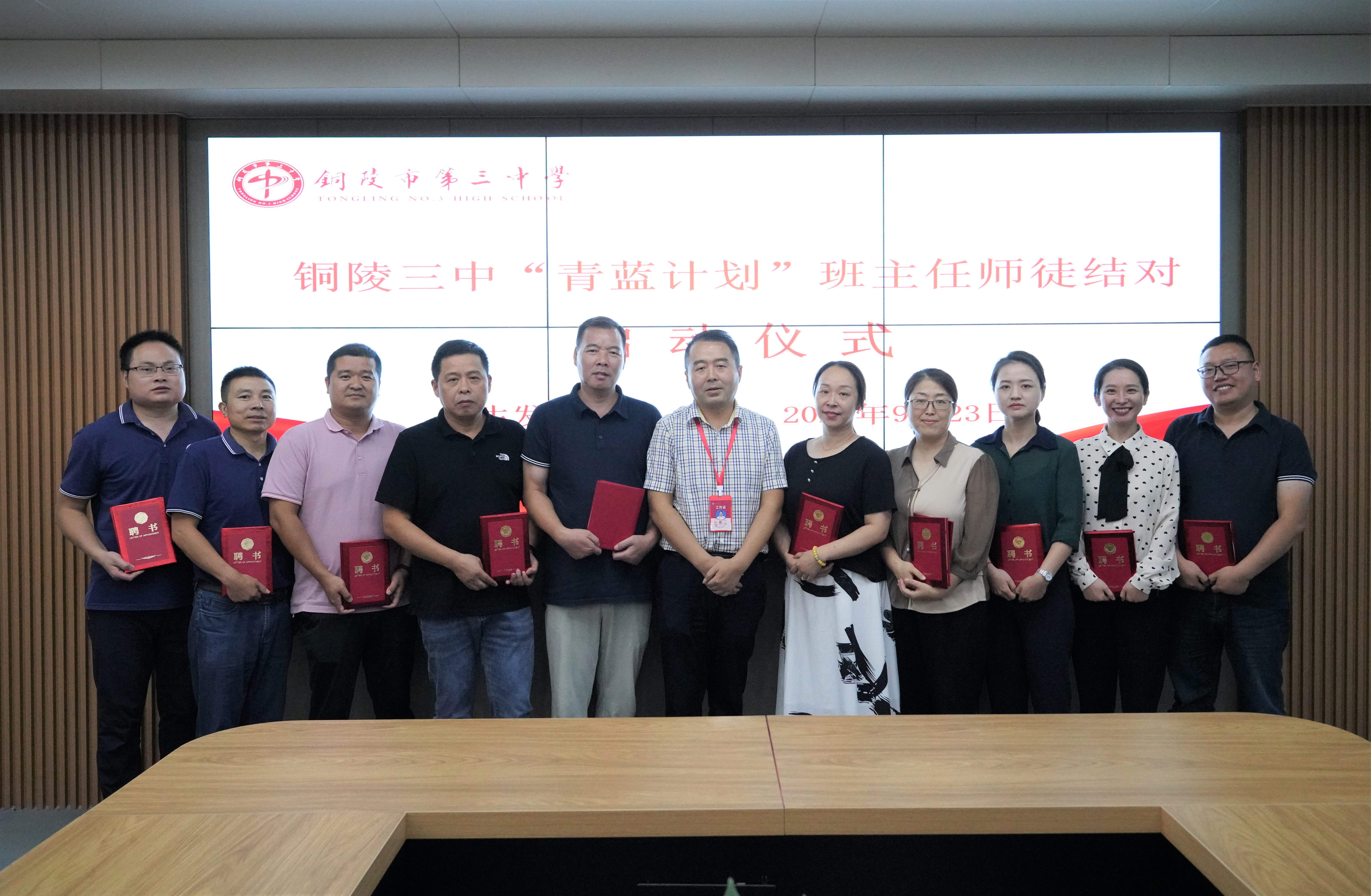为加快青年班主任的成长步伐,充分发挥骨干班主任传、帮、带作用,不断提高班主任队伍的整体素质和管理水平,9月23日下午,铜陵三中 “青蓝计划”班主任师徒结对启动仪式在躬行楼会议室举行。校党委委员、副校长章学标,学生发展中心副主任左飞,“青蓝计划”优秀班主任和青年班主任参加仪式,会议由学生发展中心副主任叶文婷主持。