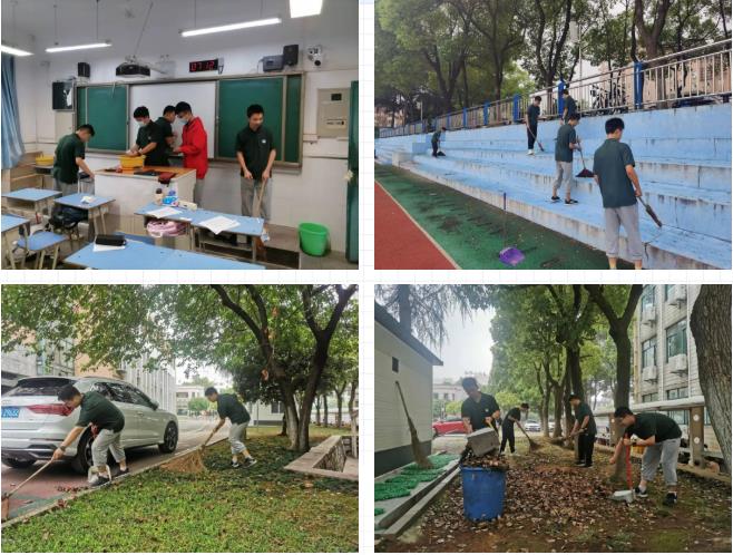 清晨伊始,在班主任老师的带领下,高一新生拿着清洁工具来到了各自班级的卫生责任区,相互配合,认真地清扫着校园。