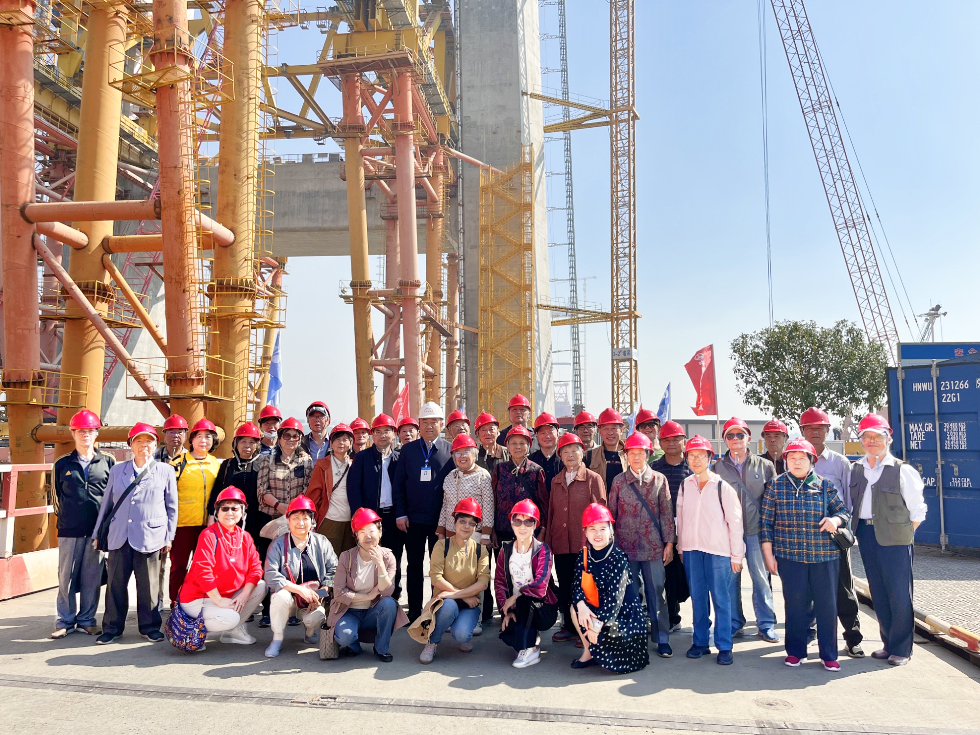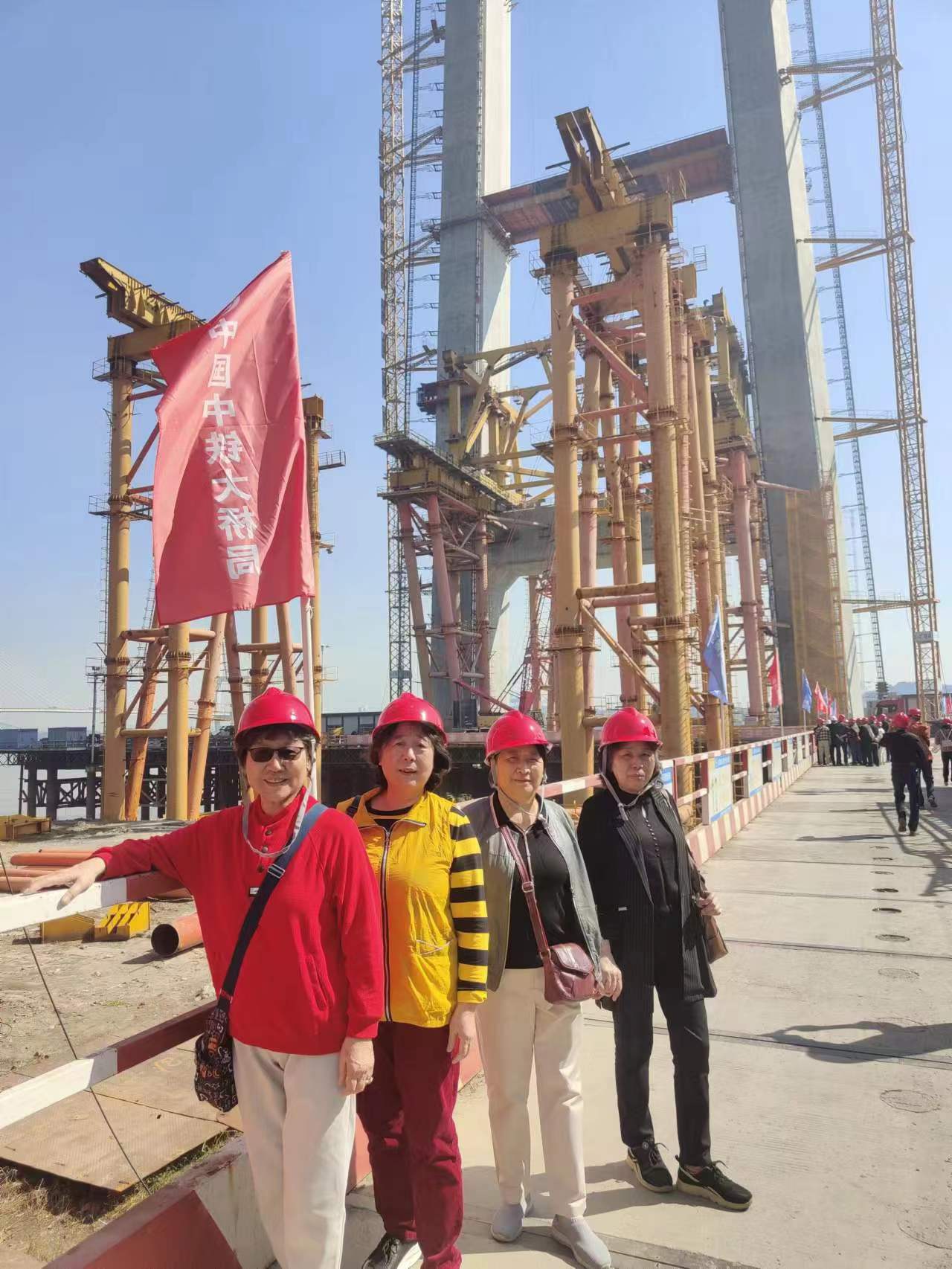 在G3铜陵长江公铁大桥北岸施工现场,退休教职工详细了解了G3大桥的项目概况和最新进展。