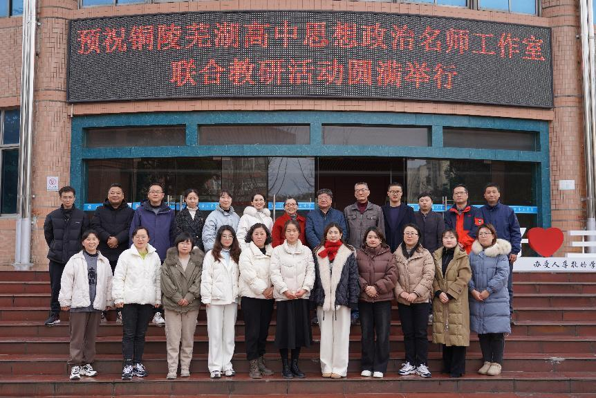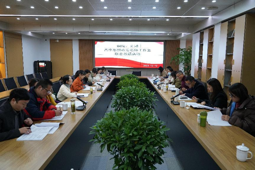 为进一步推进长三角教育科研一体化建设,加强市际教育教学经验交流,提升思政课教师科研水平,促进新时代思政课教师队伍建设,2023年12月12日——13日,铜陵市杨奇名师工作室与芜湖市查全军名师工作室联合教研活动在铜陵市第三中学举行。芜湖市教育科学研究所书记、思想政治教研员俞宏胜,芜湖市查全军名师工作室主持人查全军及工作室成员,铜陵市教育科学研究所所长、思想政治教研员江一新,市三中校党委副书记、副校长王合进,校党委副书记张国荣,校党委委员、副校长徐松成,校党委委员、副校长章学标及各科室主任、杨奇名师工作室主持人杨奇及工作室成员,及来自兄弟学校思政课教师参与此次联合教研活动。