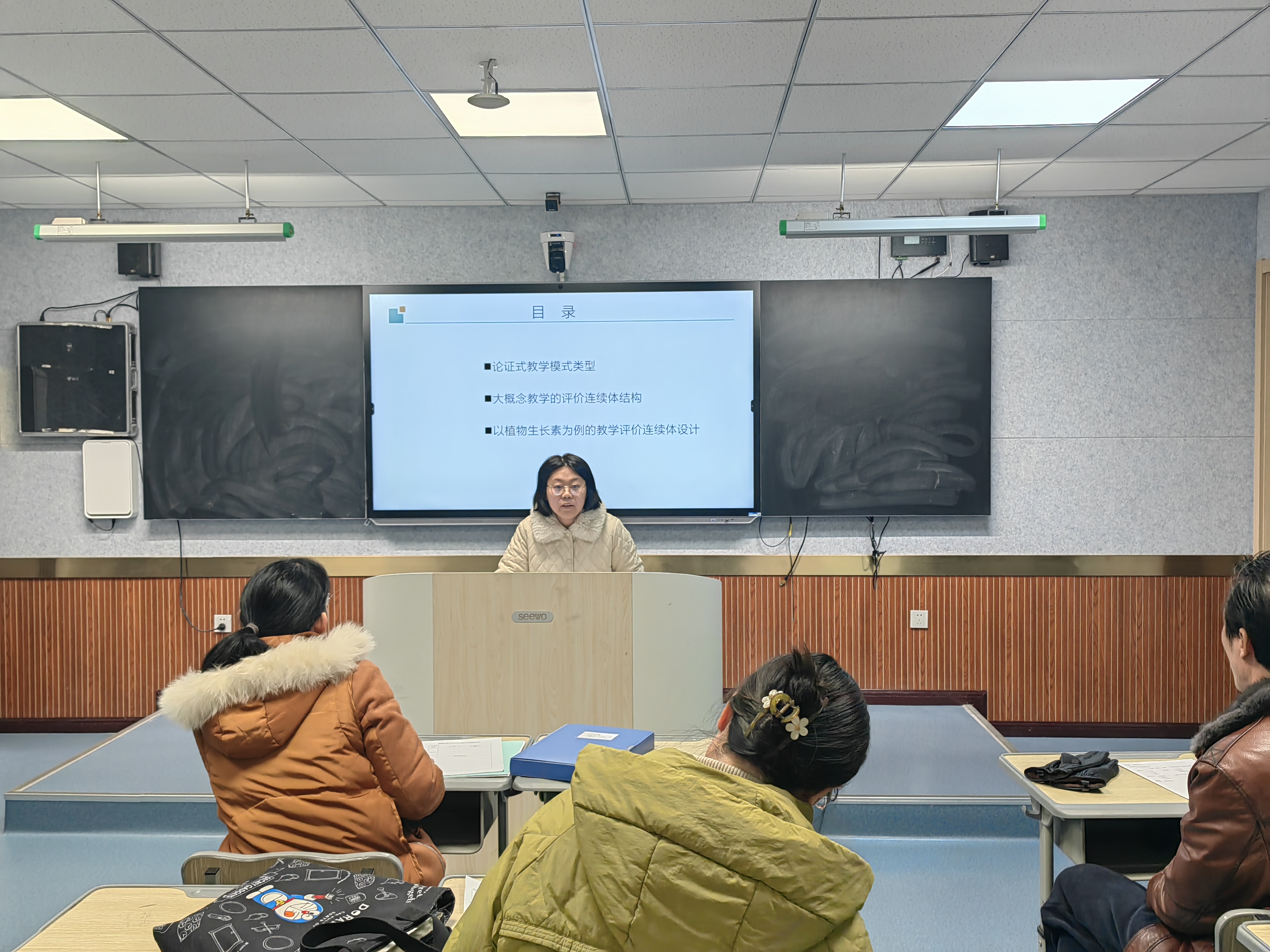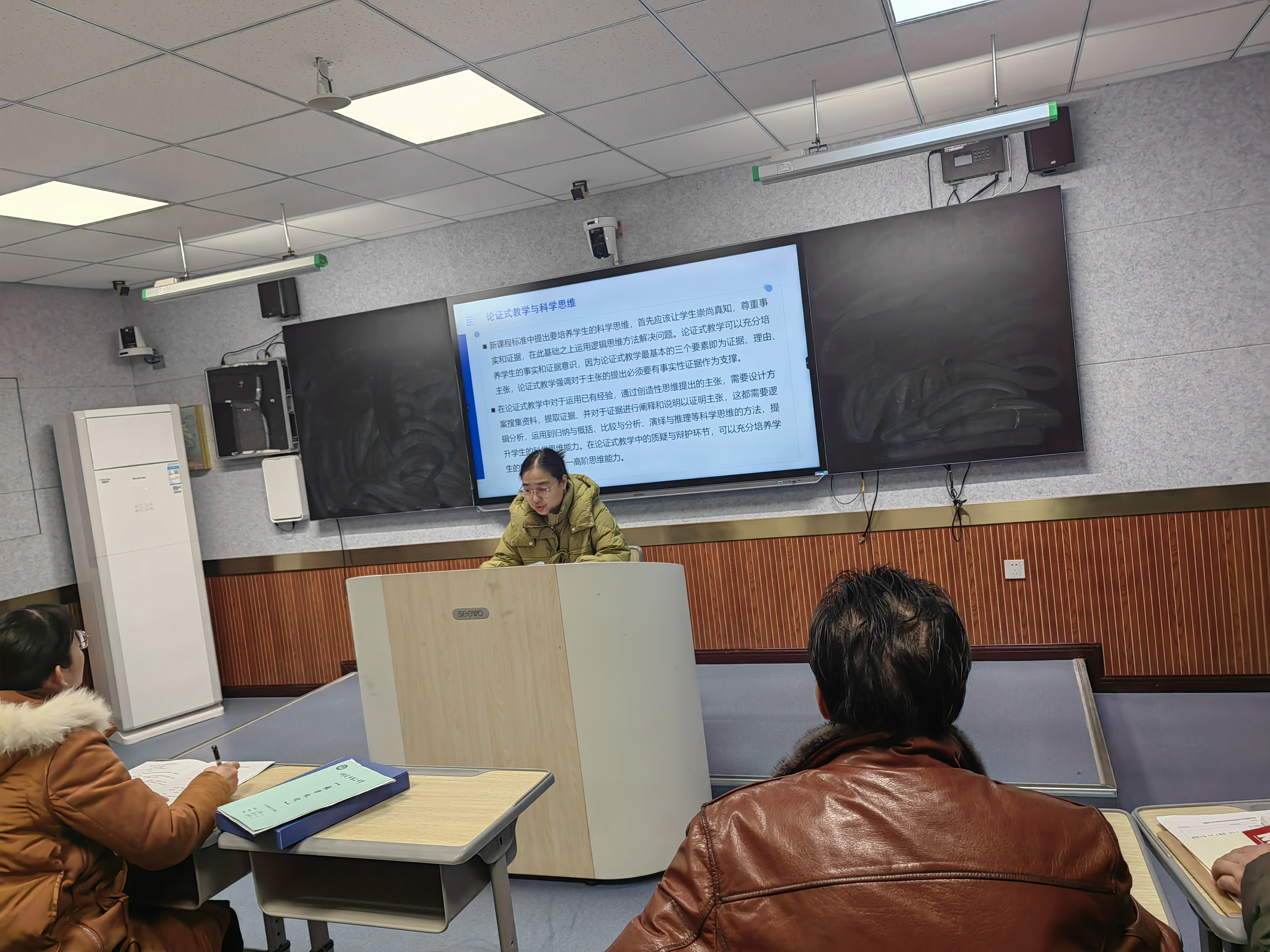 活动第二项是市三中刘洁老师为大家做《论证教学的实施》专题讲座。刘老师从论证教学的发展、论证教学的设计与实施过程、论证教学的要点等几个方面介绍了论证教学的基本面貌与一般过程。整个讲座内容深入浅出,紧密结合教学实际,有益于初接触教师理解论证教学的精髓,明确开展论证教学的必要性。