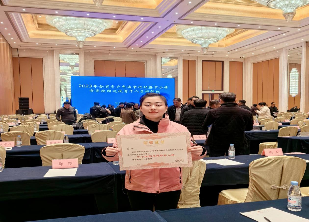 培训班上,颁发了2023年中小学图书馆榜样人物及最美校园书屋风采展示活动奖牌及证书。我校五松书院负责人吴婷荣获2023年全省中小学图书馆榜样人物。