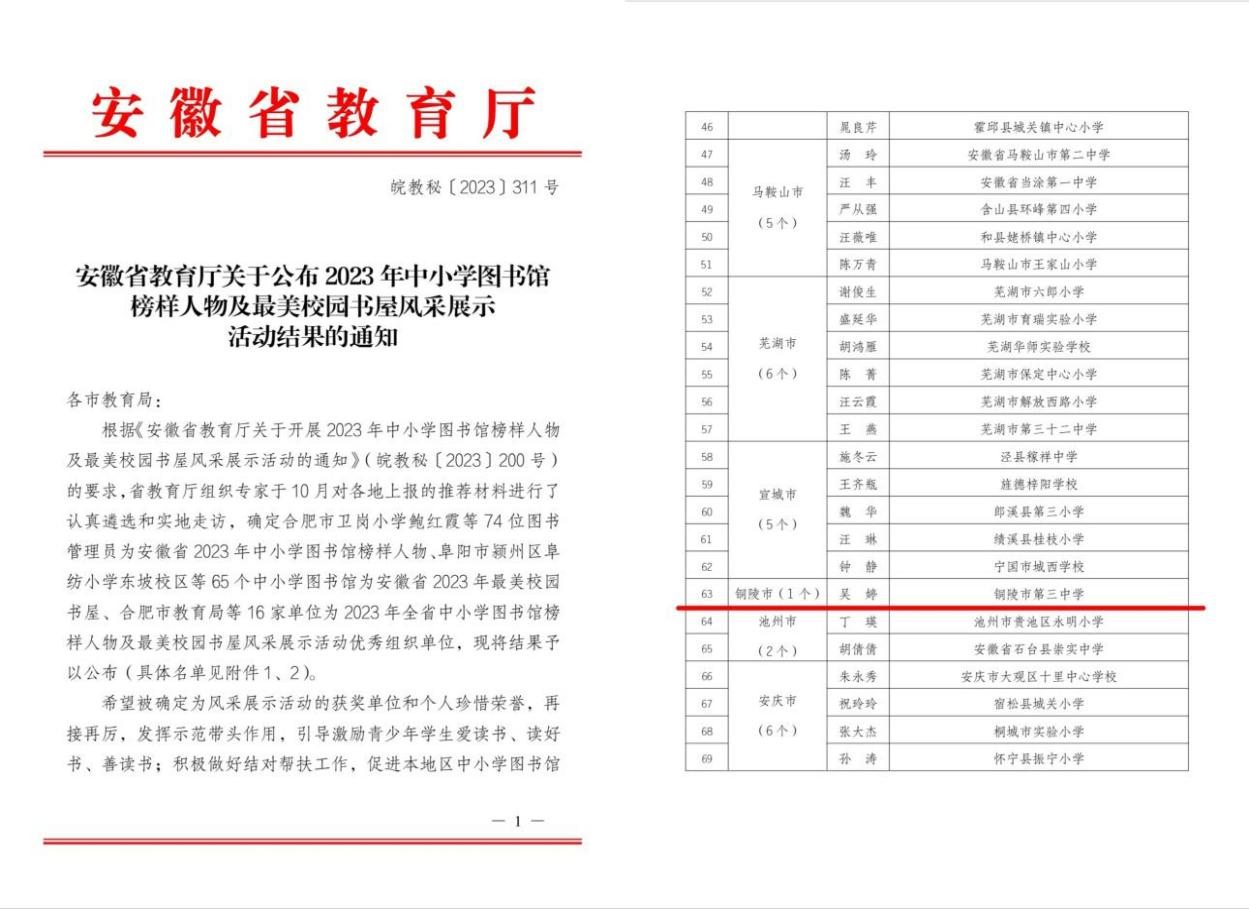 阅读是人类获取知识、启智增慧、培养道德的重要途径,可以让人得到思想启发,树立崇高理想,涵养浩然之气。铜陵市第三中学深入学习贯彻习近平新时代中国特色社会主义思想,全面贯彻党的教育方针,认真落实立德树人根本任务,高度重视青少年阅读工作,把书香校园建设作为落实党的教育方针的重要抓手。三中人积极组织开展形式多样的读书活动,形成了爱读书、读好书、善读书的浓厚氛围,着力培养德智体美劳全面发展的社会主义建设者和接班人。