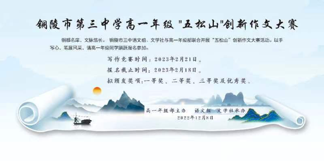 为提高学生对生活的观察力,展现当代高中生的思想认识,同时响应“双减”政策,提升学生的写作兴趣,提高学生语文素养,优化作文课堂教学策略。2月21日,我校高一年级联合语文组及文学社开展了“五松山”现场创新作文大赛。