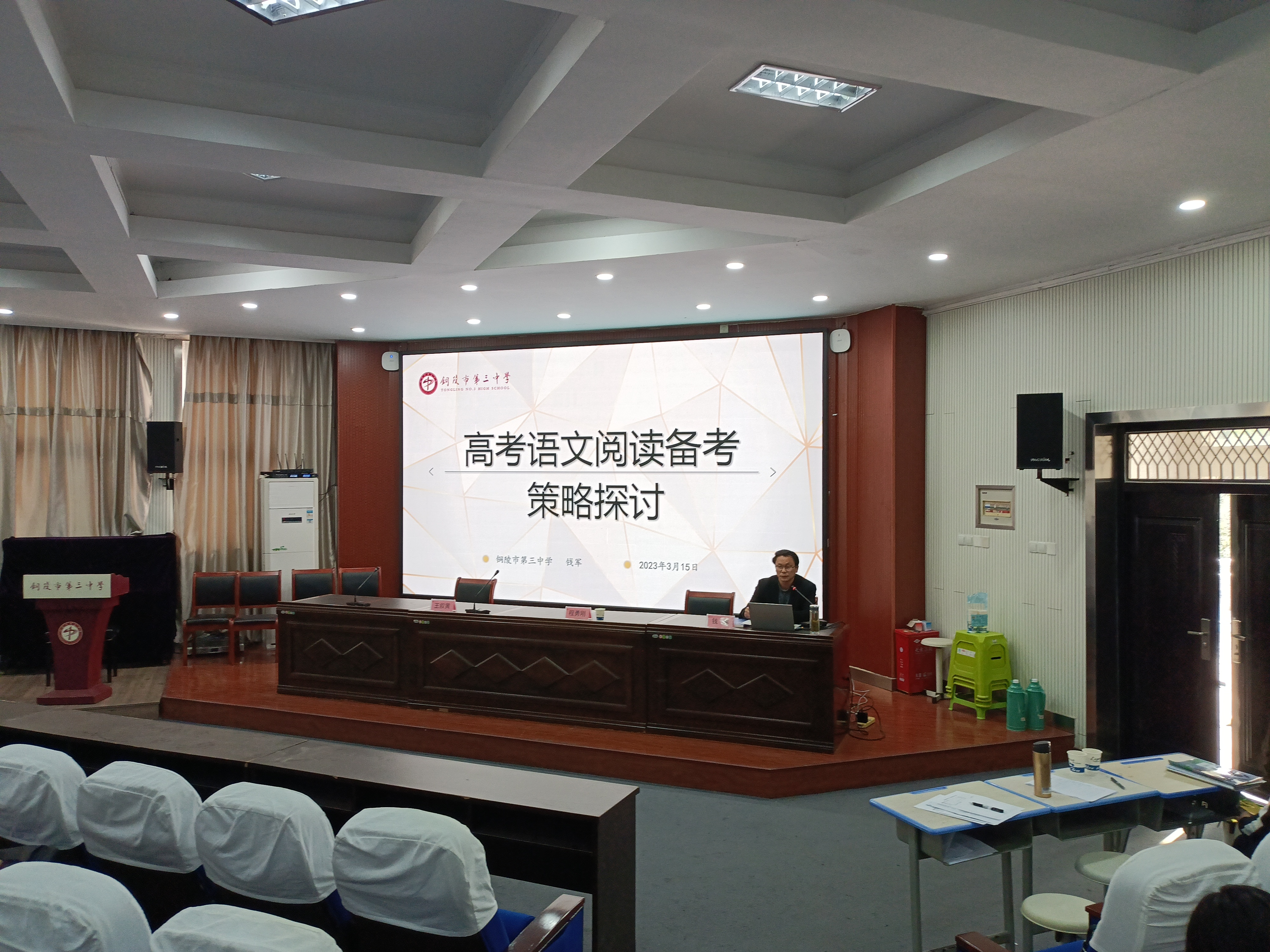 为了更好地掌握高考新变化和新趋势,进一步总结和交流先进教学经验,提高高考语文学科二轮复习的备考效率,提升高三语文教师的备考水平,3月15日下午市教科所在我校多功能厅举办新课标老高考语文学科复习研讨会。市各高中学校语文教师参与,程勇刚、王叙黄、钱军三位专家现场做报告。