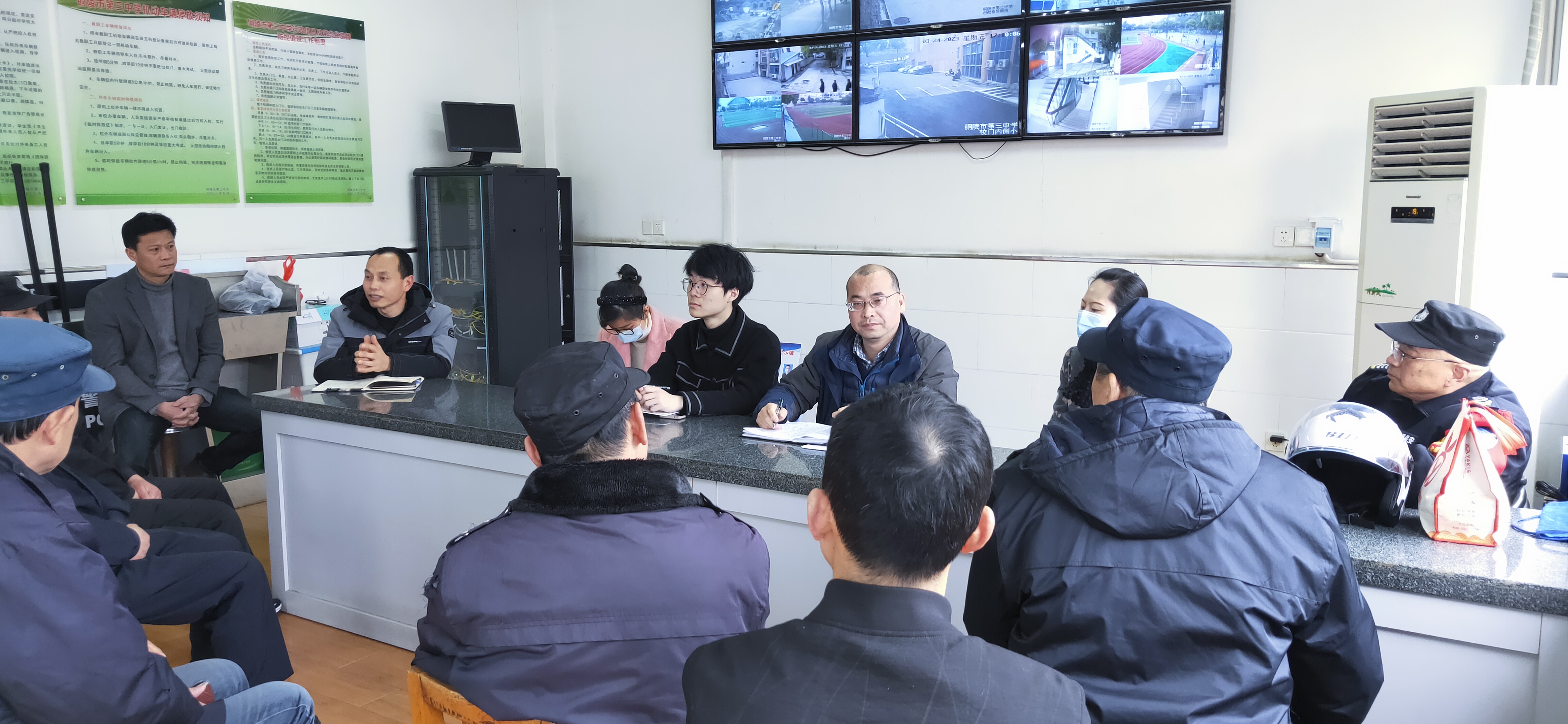 2023年3月24日下午,安卫科在值班室召开安全工作会议暨保安工作例会,校保卫科老师乔红胜、胡晓玲、谭敏捷,校医姚清秀,金盾保安经理及全体保安参加会议。乔红胜主持会议并对近期的工作进行总结。