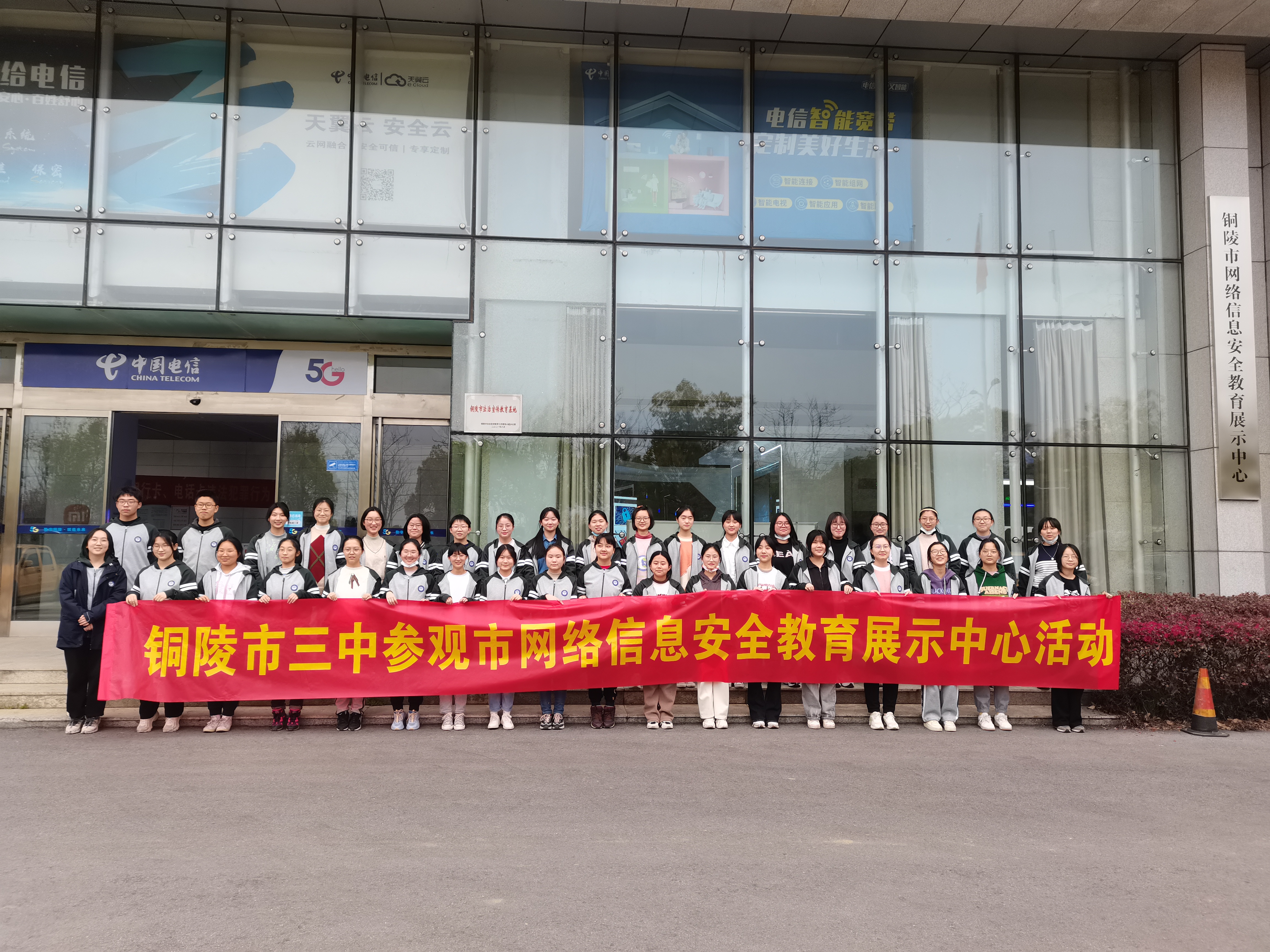 2023年3月27日是第28个全国中小学生安全教育日,其所在周被确定为安全教育周。为落实《铜陵市教体局关于开展全市中小学生安全教育周活动的通知》和相关文件精神,3月29日,我校组织高一(13)班、高一(17)班学生参观铜陵市法制宣传教育基地——铜陵市网络信息安全教育展示中心。高一年级部饶衡山老师和家长代表带队,校安全卫生科乔红胜老师全程参加。