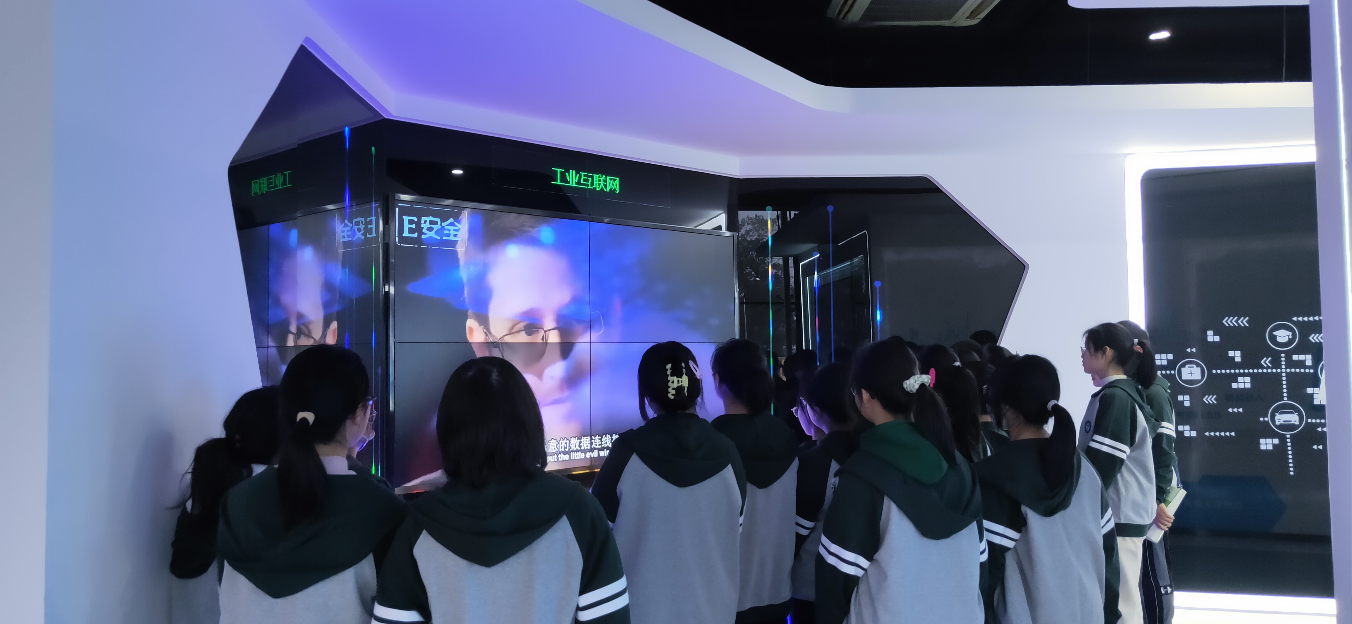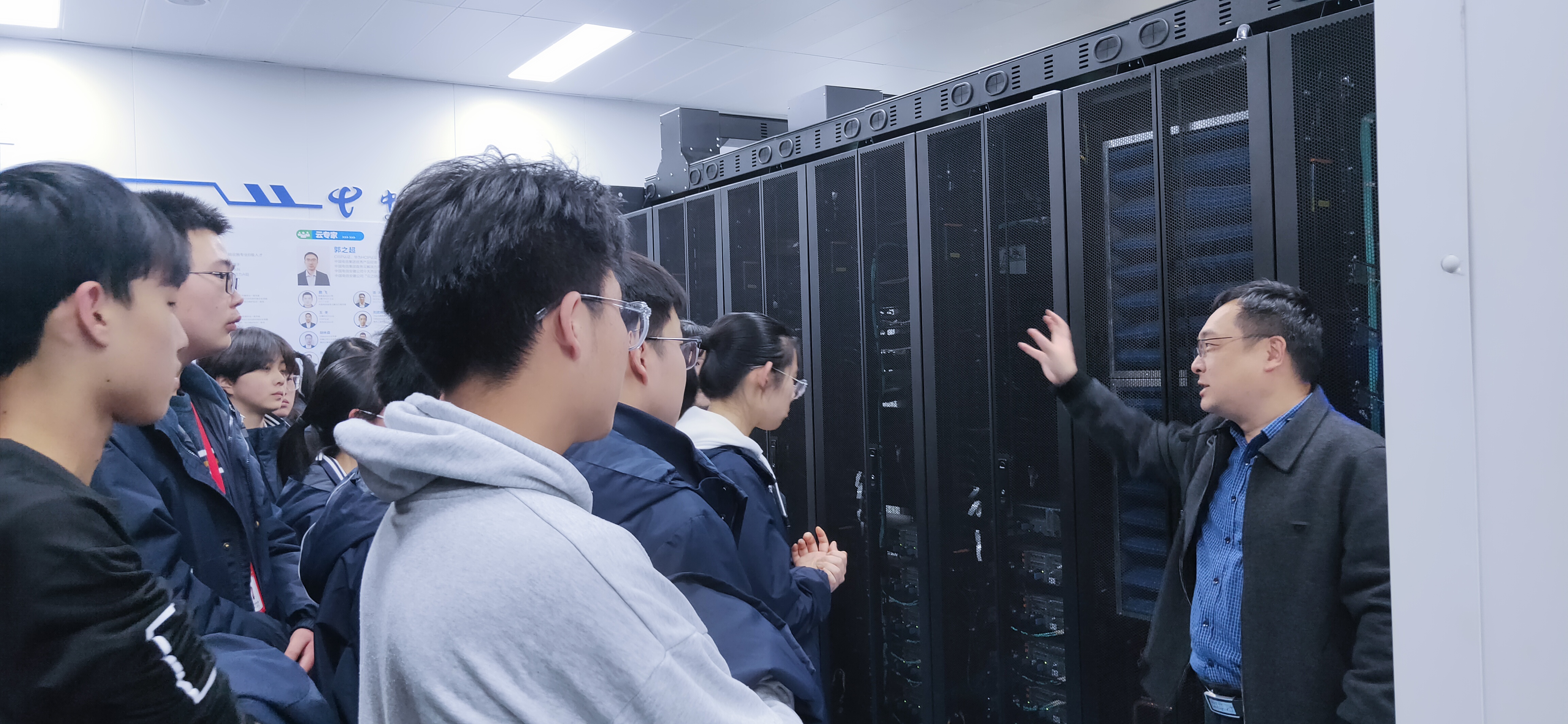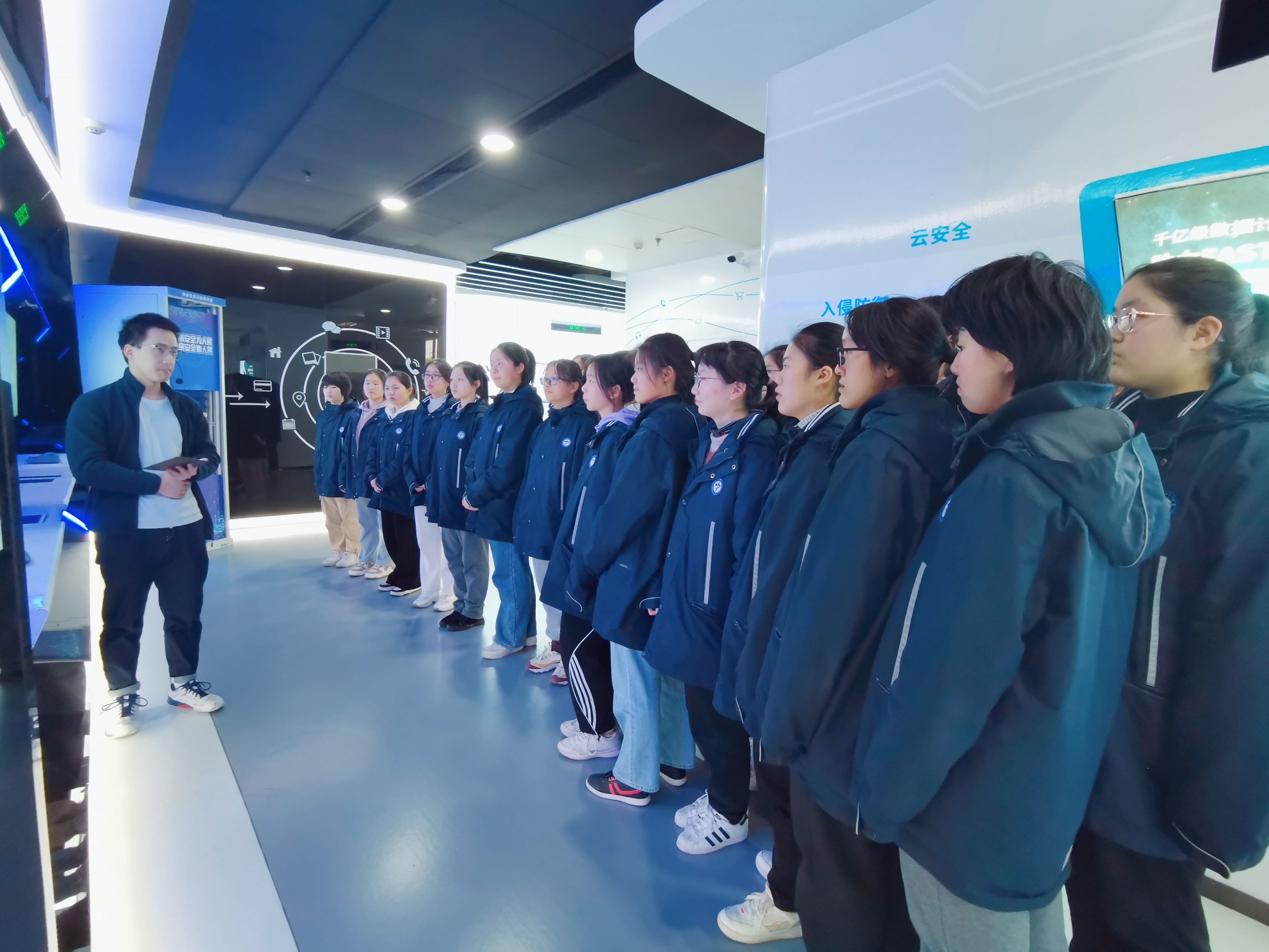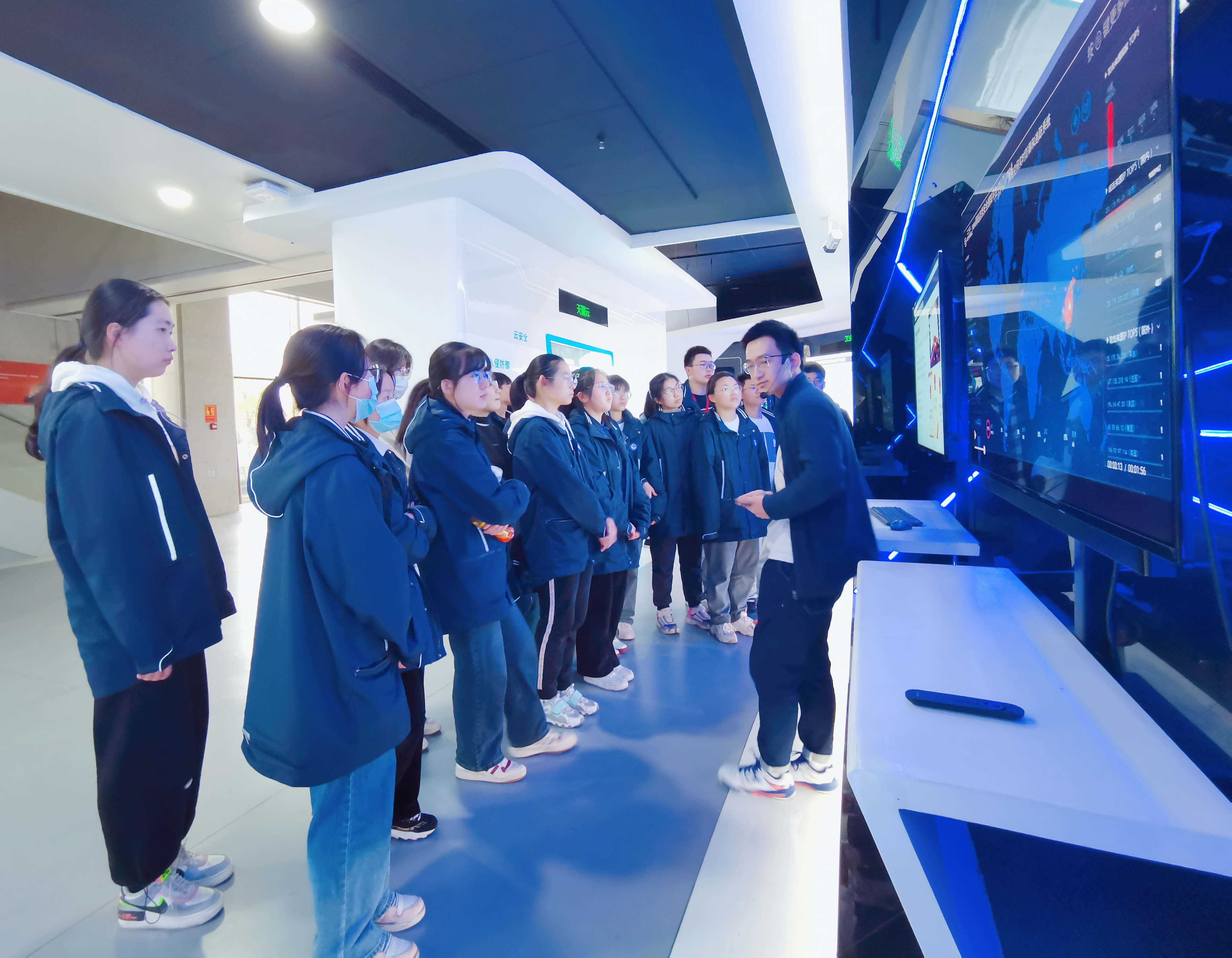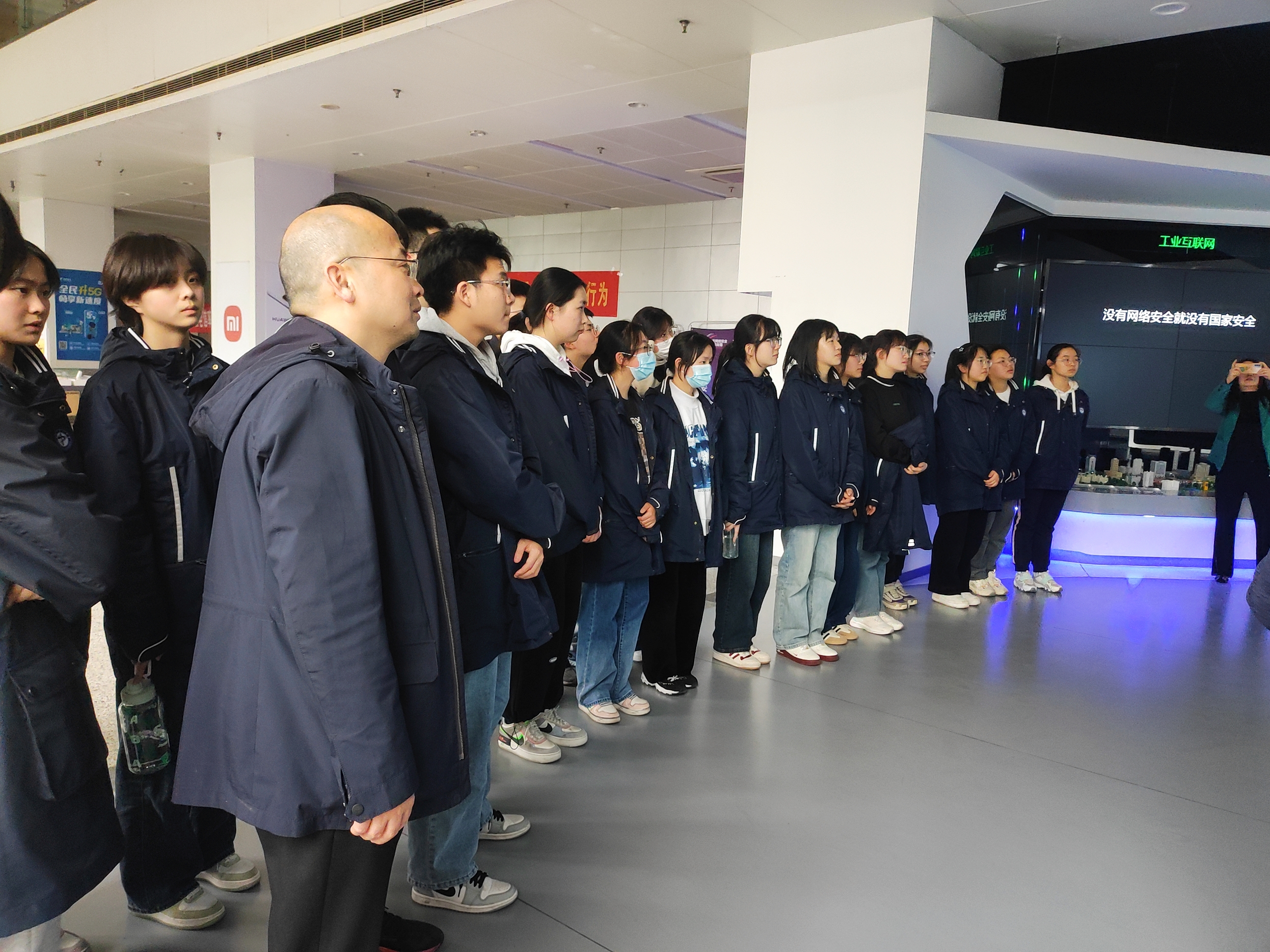 在参观展示中心和机房的过程中中,同学们认真听取中心讲解员的讲解,进一步了解了网络信息安全法律法规、关键信息基础设施安全、等级保护制度、防范通信信息诈骗等方面的知识,对网络安全工作的重要性有了更深入的认识。