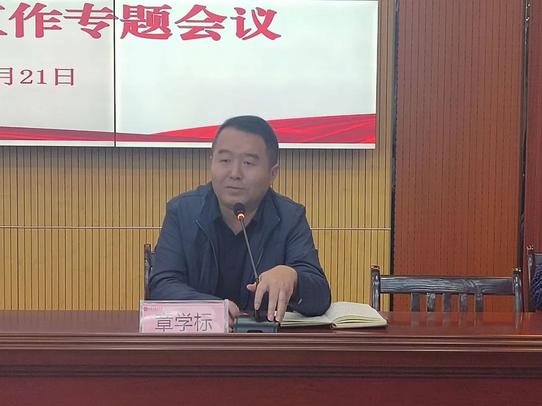 4月21日下午,我校在躬行楼五楼多媒体会议室召开4月份班主任工作例会暨校园安全工作专题会议,校党委副书记、副校长王合进,校党委委员、副校长章学标,校学生发展中心副主任左飞,校安全卫生科乔红胜老师,以及全体班主任参加会议,会议由左飞主持。
